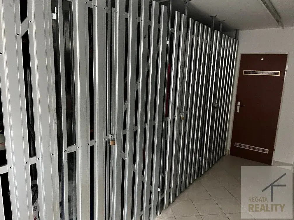 Je zde společná místnost pro praní a sušení prádla. Byt se prodává zařízený (kromě 2 kusů nábytku).