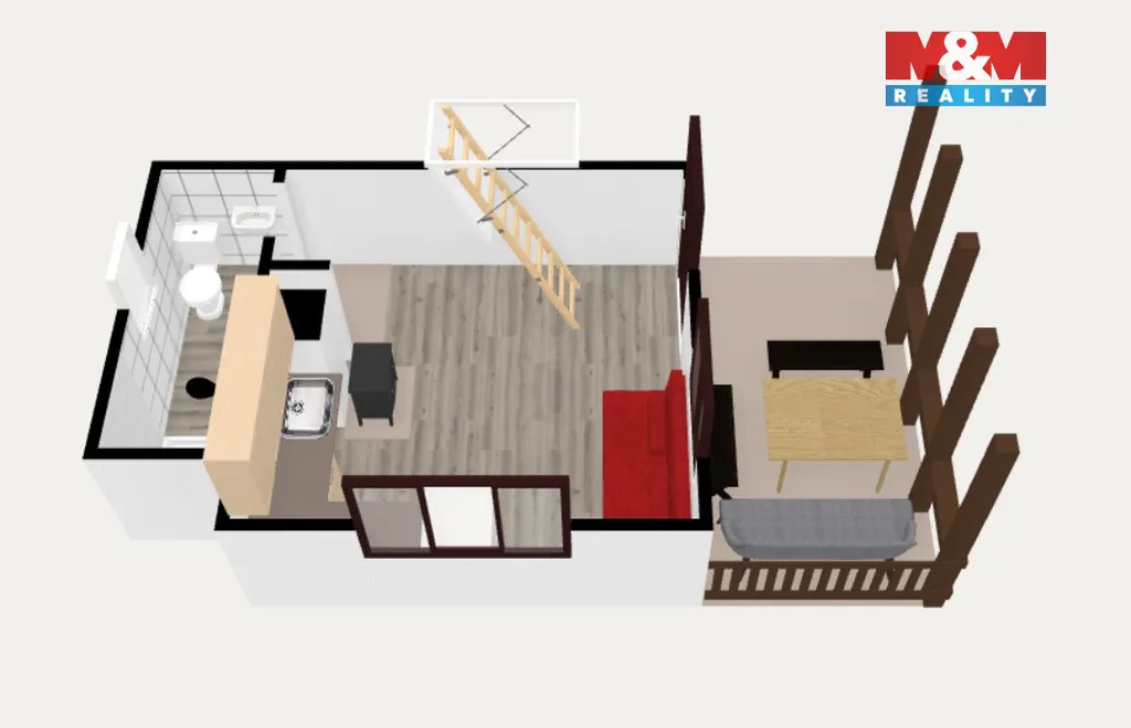 Terasovitý pozemek nabízí skleník, udržovaný trávník, dětskou prolézačku i romantické jezírko. Ideální místo pro rodinu, relax i víkendové úniky z města. Krytá terasa zve k ranní kávě i večernímu grilování, podkroví pak poskytne pohodlné přespání.
