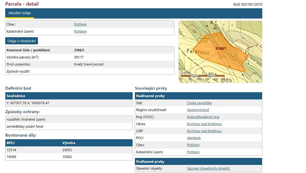 Parametry pozemku