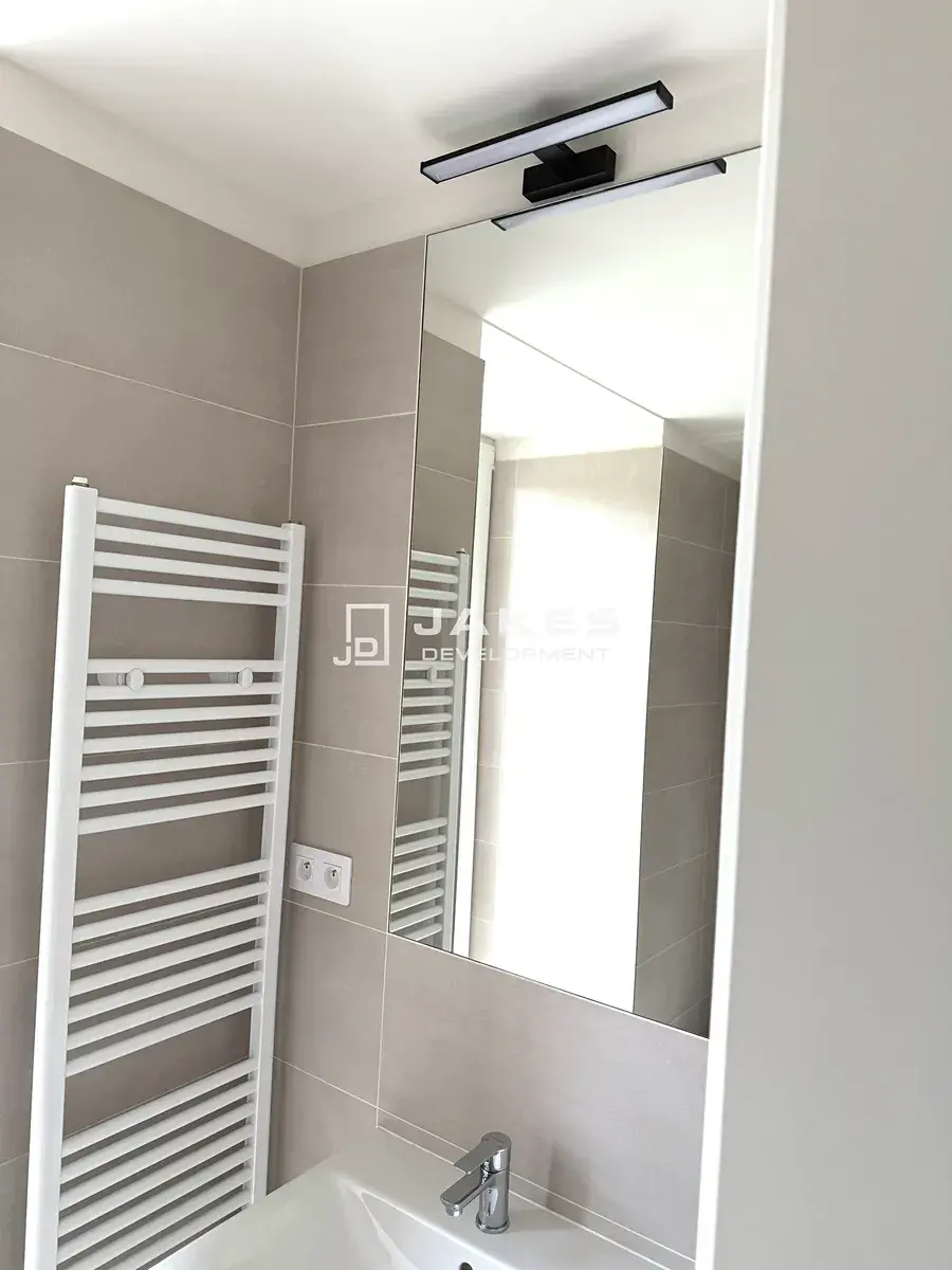 Každý byt je vybaven kvalitními vinylovými podlahami, teplovodním podlahovým vytápěním, velkoformátovými obklady a moderní kuchyňskou linkou. Byt se pronajímá nevybavený. Bytový dům prošel kompletní rekonstrukcí, je zateplený a má tepelně i hlukově izolační trojskla. Vytápění domu a bytů zajišťuje městský dodavatel energií a objekt navíc má vlastní kotelnu, což přispívá k nízké spotřebě energie a nižším nákladům na bydlení ve srovnání s běžnými domy. Přístup do domu je na klíč nebo na kód a každý byt má sklep o velikosti cca 2 m².