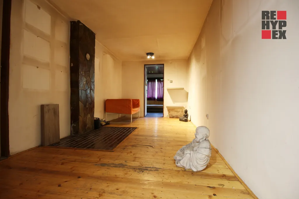 Jako bonus majitel ke stavební pozemků přidává i ideální polovinu rodinného domu, který se nachází hned přes cestu. Jedná se o starší dům v původním stavu. Majitelé jsou dohodnuti na společném využívání koupelny a WC (suché) a odděleném využívání přízemí (kuchyňský kout, pokoj a ložnice) a poloviny půdních prostor (prostor pro přespání). Je možná jej tedy například využít jako zázemí pro řemeslníky při výstavbě na vedlejším pozemku. Topení je zajištěno prosklenými krbovými kamny, takže je možné i celoroční obývání.