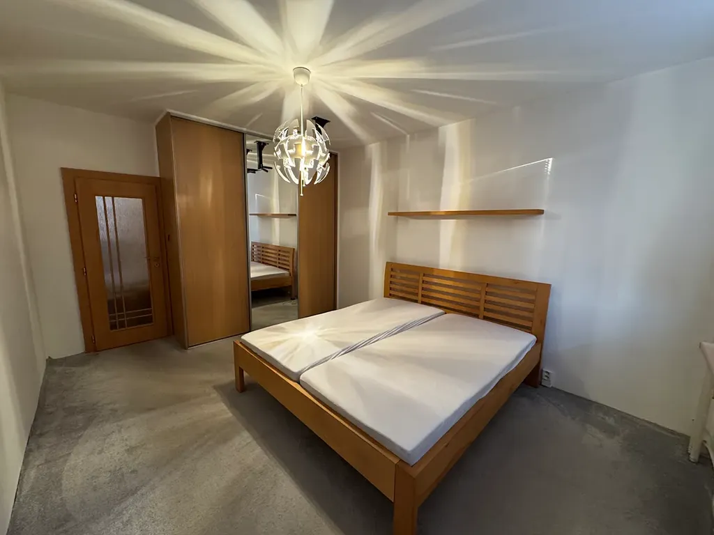 ložnice (16 m²) s nadstandardně velkou vestavnou skříní + postel