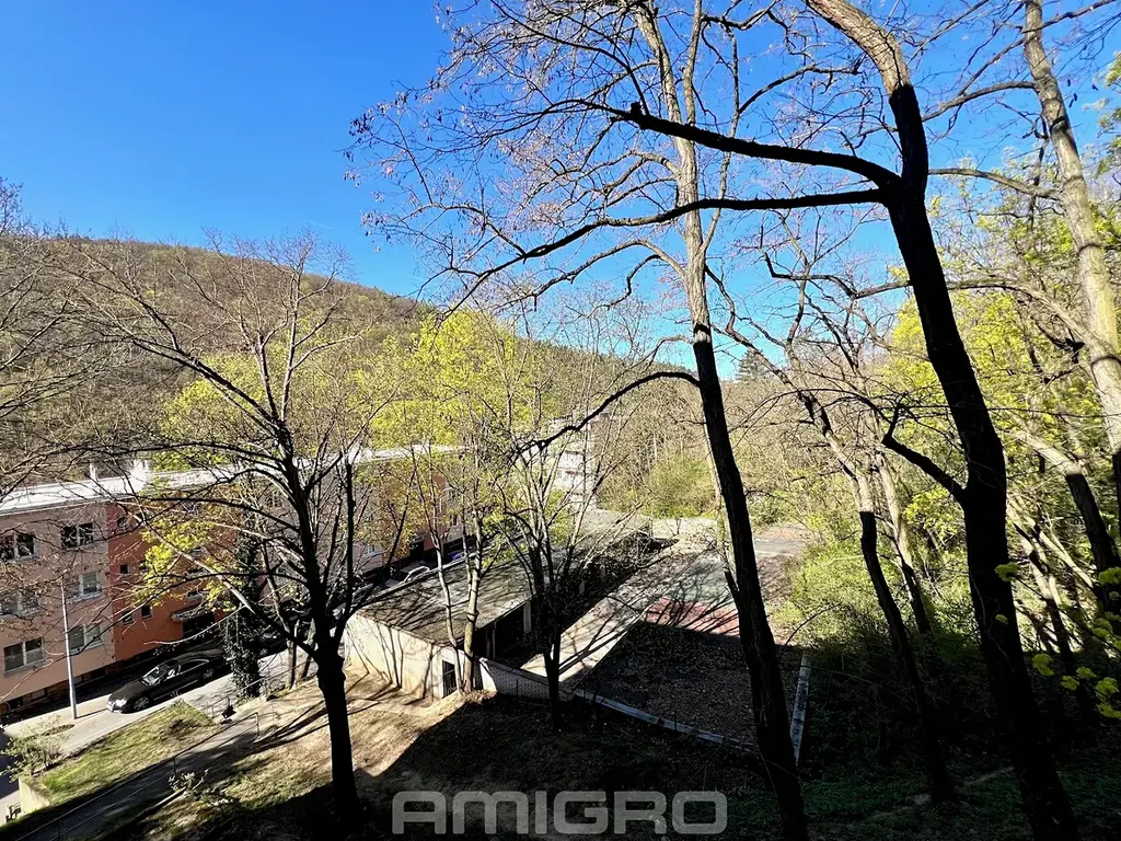 Byt s výhledem do okolní zeleně se nachází v předposledním podlaží čtyřpodlažního cihlového domu.