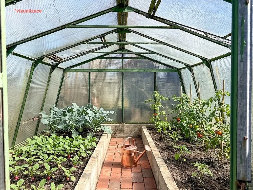 Na zahradě s výhledem do širokého okolí máte možnost relaxace a odpočinku, nebo se věnovat zahradnickým činnostem. Na pozemku jsou ovocné stromy a skleník.