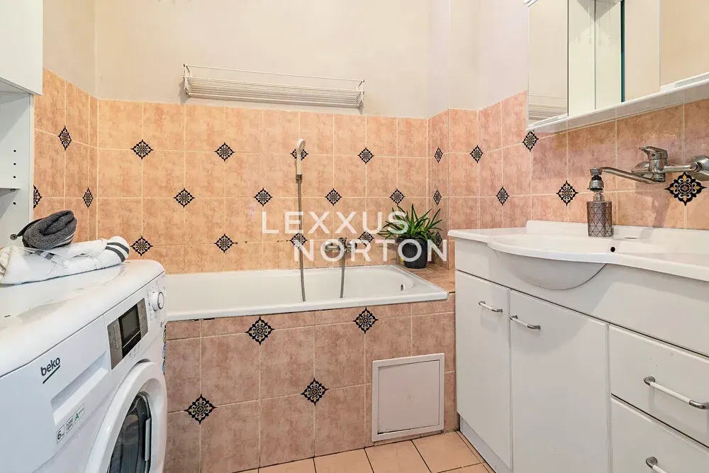 Vstup do bytu je řešený centrální pavlačí s přirozeným denním světlem, která funkčně propojuje obě původní jednotky. Dispozice aktuálně nabízí dva obývací pokoje a dvě ložnice. Samostatná kuchyně je příjemně prosvětlená velkým oknem do pavlače. Další část bytu doplňuje koupelna s vanou a oddělená toaleta. Velkým benefitem je možnost využívání společné zahrady, a navíc i s částí výhradně pro majitele bytu.