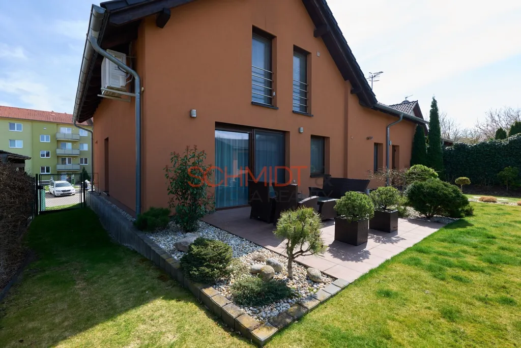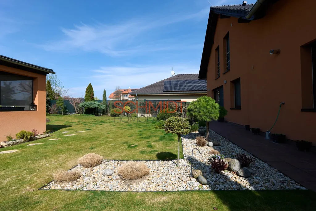 Dům se nachází na parcele o výměře 689 m². Krásná zahrada nabízí vzrostlé okrasné keře a zděný zahradní domek, který slouží k posezení s přáteli a odpočinku. Jeho součástí je další WC. Za zahradním domkem je kousek užitkové zahrádky.