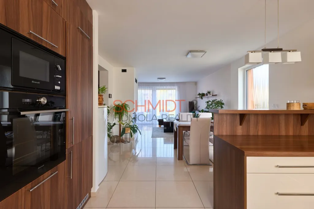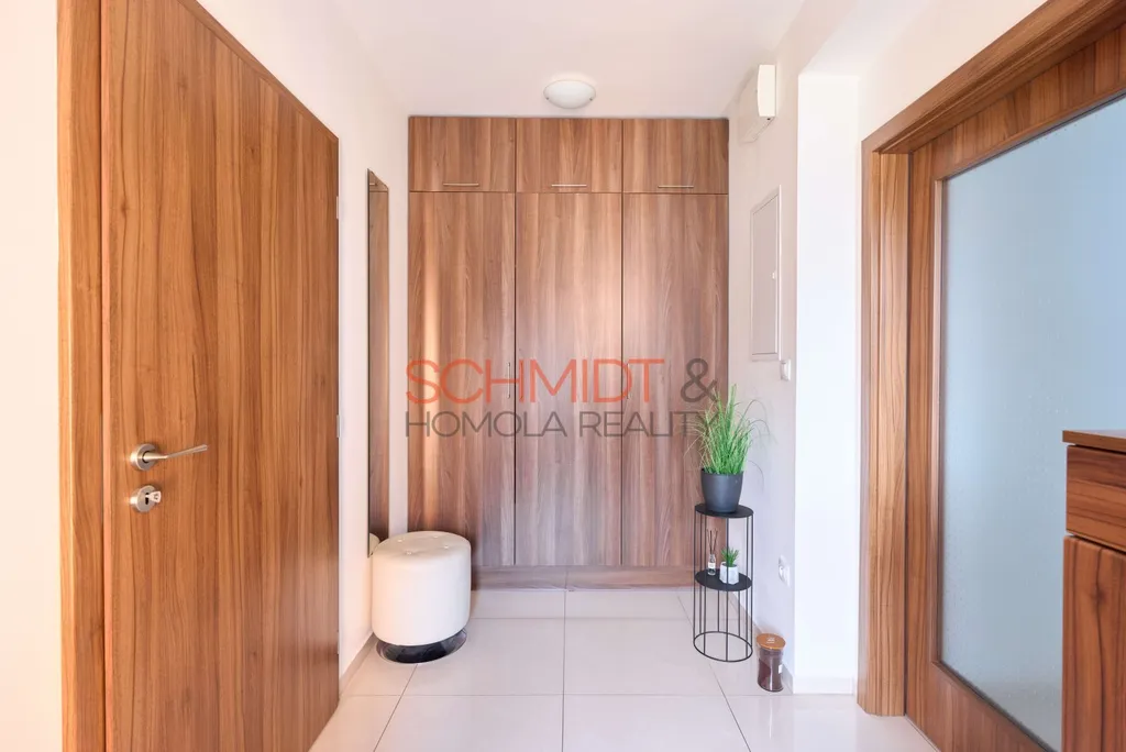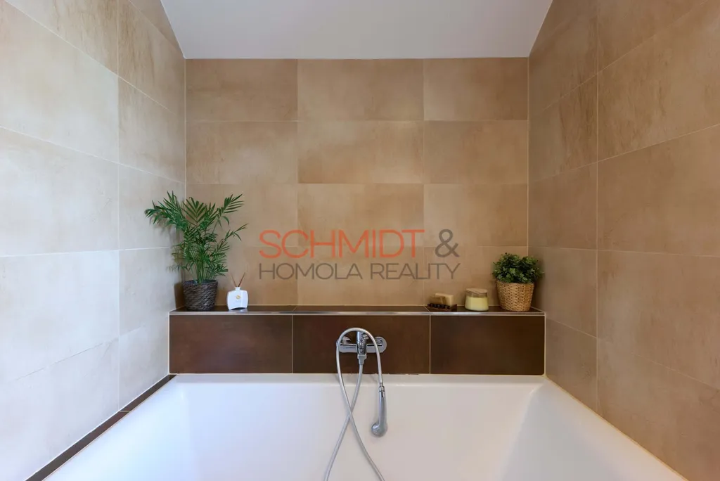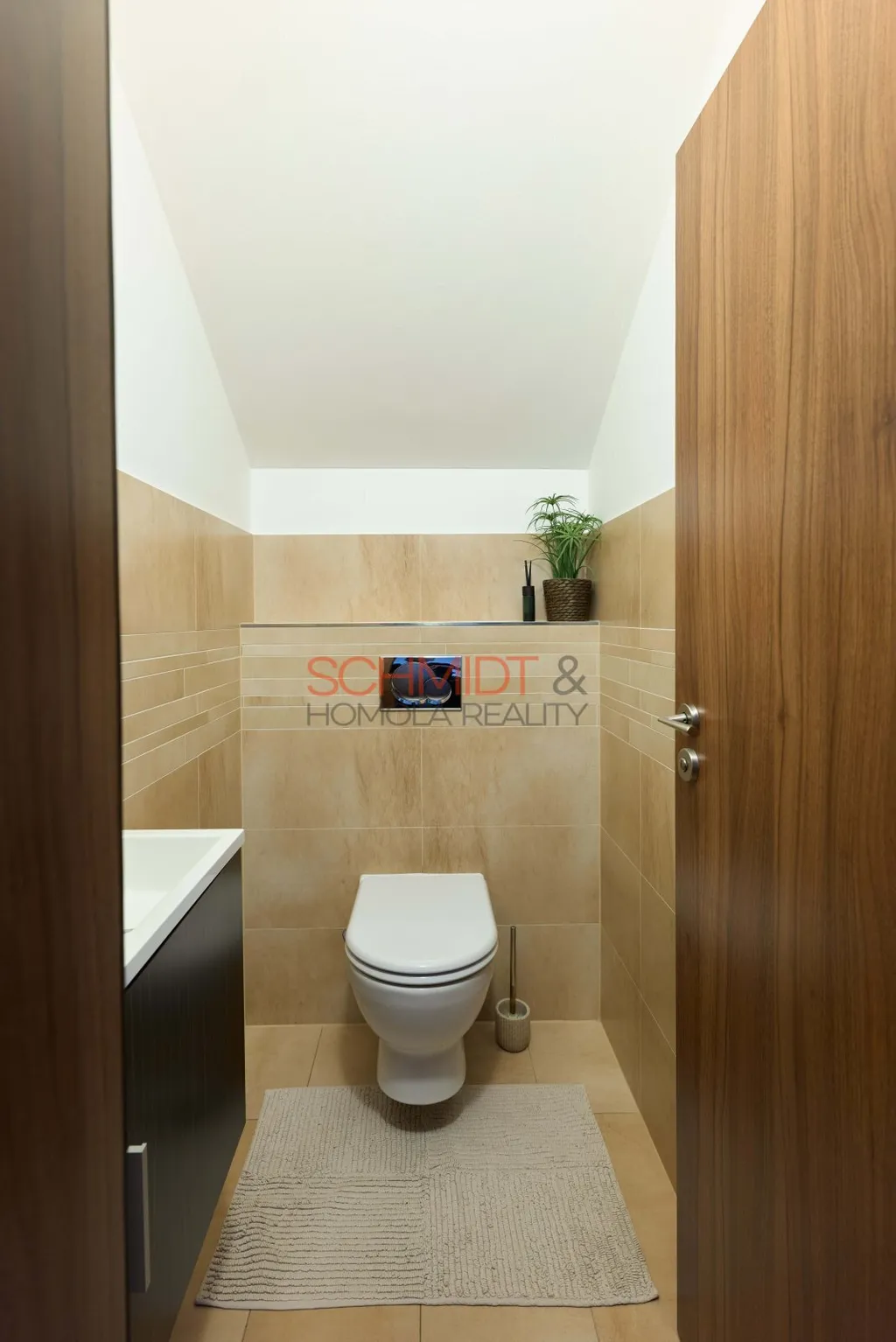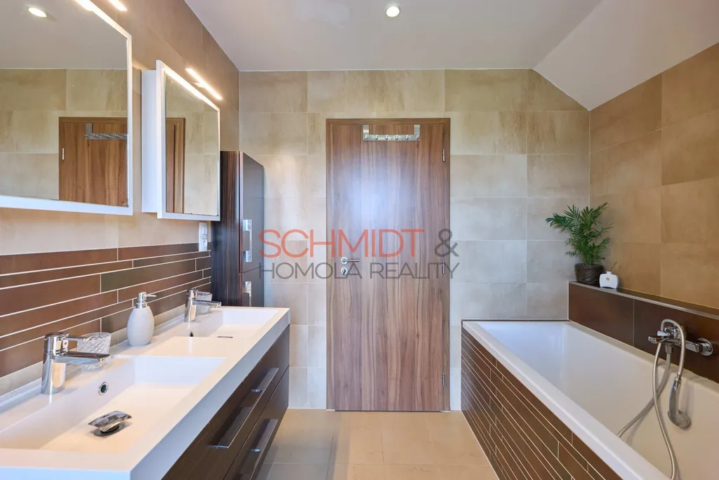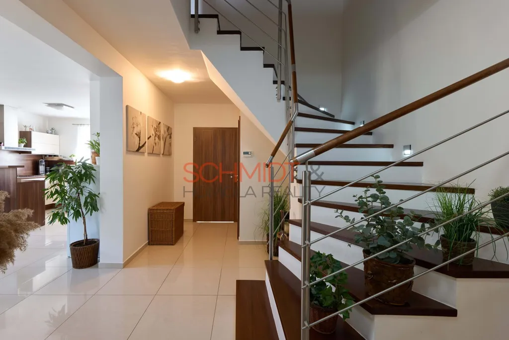 K chlazení slouží stropní klimatizace umístěná nad schodištěm v prvním podlaží. Centrální vysavač pomůže s běžným úklidem a zabezpečovací systém Jablotron propojený s požárními hlásiči dodá pocit bezpečí.