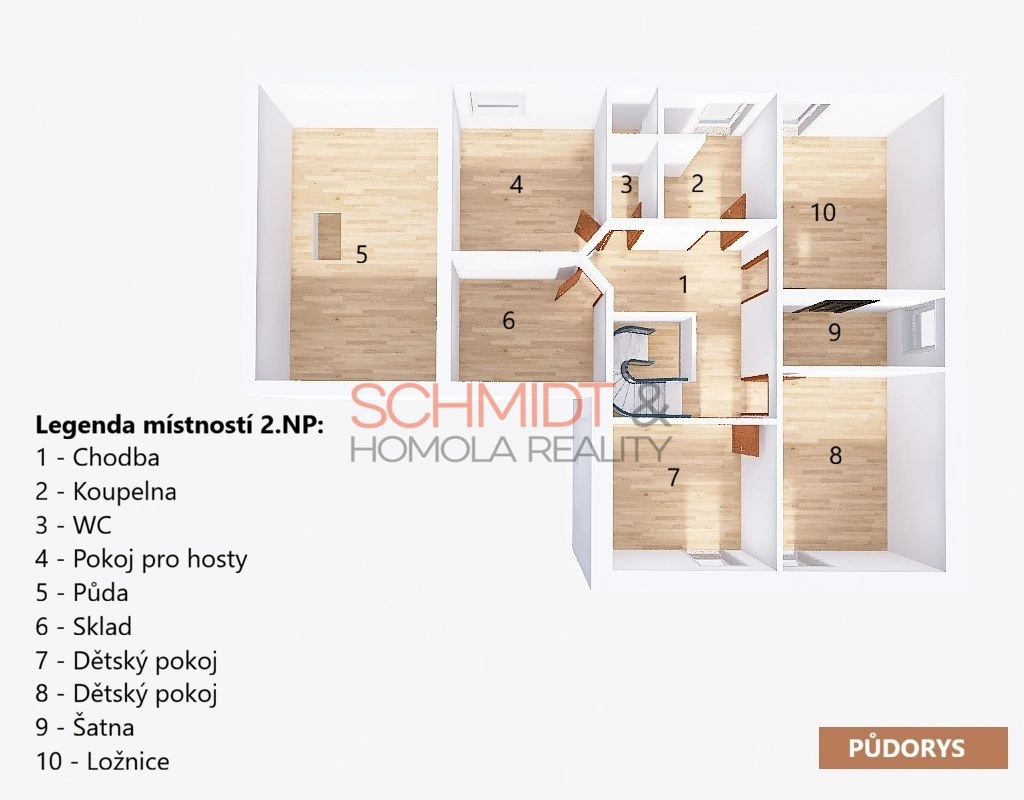 Celý dům je využitý, včetně prostoru nad garáží, ze které je přístupný po stahovacích schodech. Jeho rozměr je 6,4 x 3,9 metru.