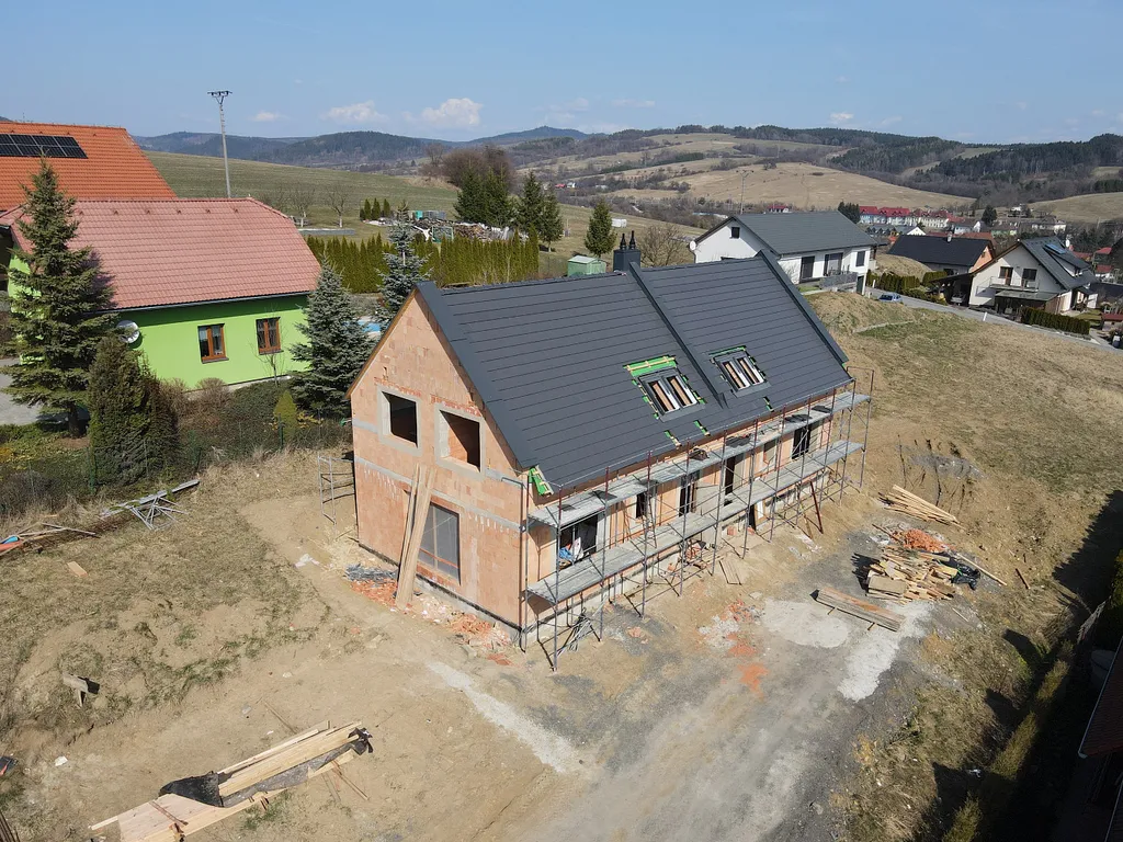 Hlavním zdrojem vytápění je tepelné čerpadlo, které zajišťuje spolehlivý a efektivní provoz. Teplo je do jednotlivých místností rozváděno pomocí podlahového vytápění, které přispívá k rovnoměrné tepelné pohodě v celém domě. Dům bude nachystaný k nastěhování a užívání v létě 2026. Cena nájmu 24.000,-Kč plus energie (cca 4.000,-Kč).