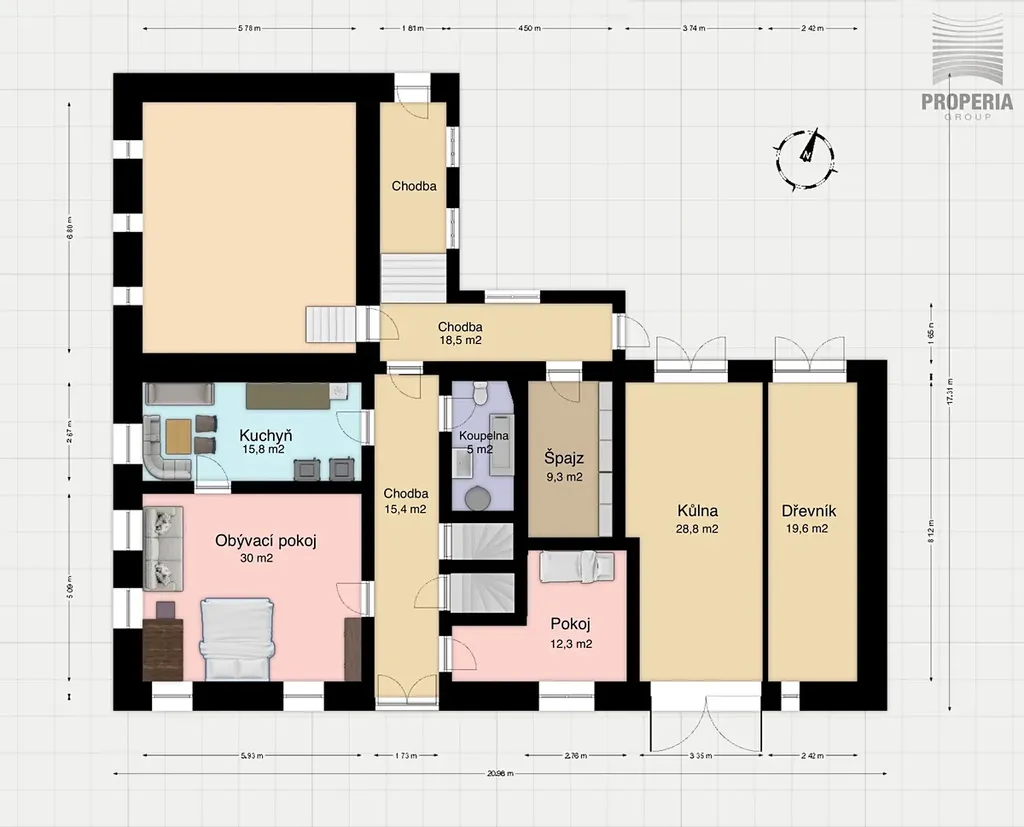 - velkoryse rozlehlé okolní pozemky o velikosti 11 151 m²