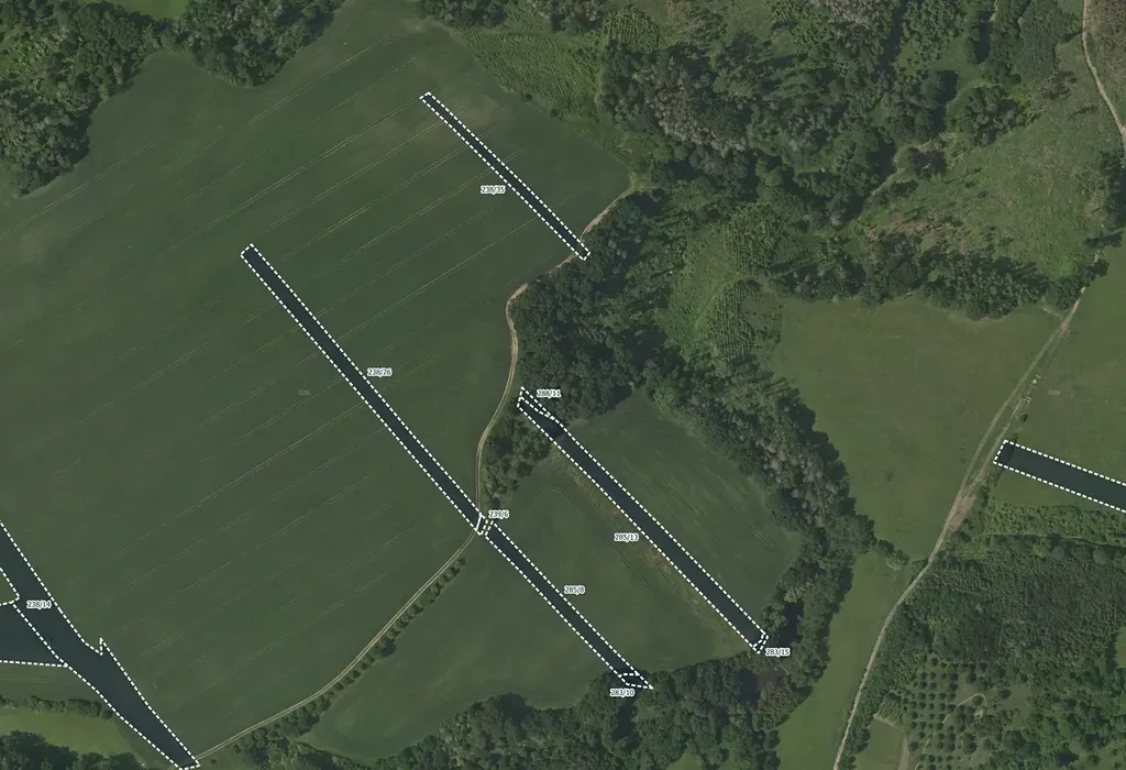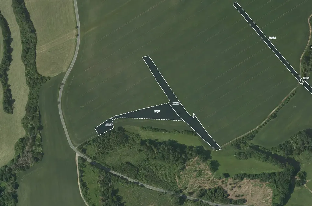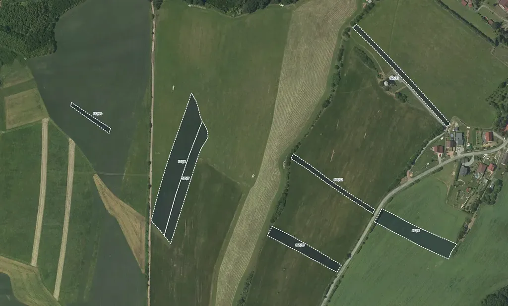 Pozemky mají parc. č. 564/4, 584/8, 584/6, 460/10, 460/6, 446/13, 415/13, 285/13, 239/6, 442/2, 582/10, 579/5, 575/7, 575/6, 565/39, 565/29, 565/22, 565/13, 562/35, 562/26, 562/25, 285/8, 283/15, 283/10, 483/5, 481/13, 481/5, 463/28, 463/27, 462/7, 415/7, 331/9, 331/3, 322/2, 238/35, 238/26, 238/14, 238/5, 238/2, 562/8, 562/23, 460/18, 316/3, 312/7, 288/11, 521/7 a 520/3.