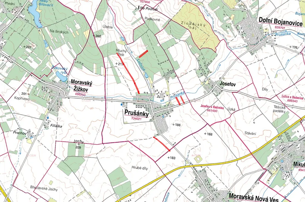 KU Prušánky, LV 2570: parc. č. 901/7, 902/3, 903/1, 913/44, 1970/36, 1970/37, 1971/65, 1971/66, 2676/56, 3094/59, 3137/208, 3144/43, 3145/44, 3146/42, 3149/42, 3221/23, 3223/140 a 3223/141