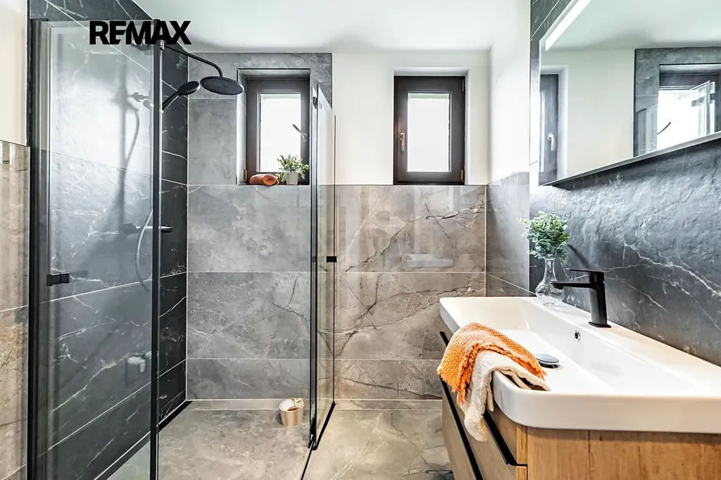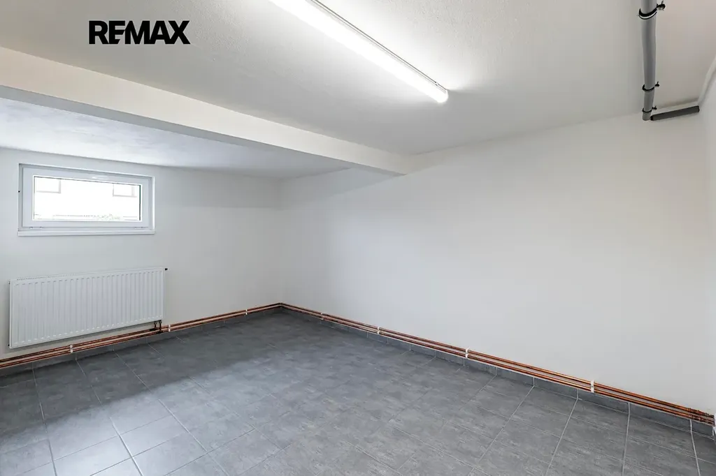 V suterénu najdete garáž (přičemž parkovat lze i na parkovišti u domu), technické zázemí, dostatek úložného prostoru a navíc spoustu místa třeba pro domácí posilovnu nebo saunu. Nechybí zde ani sprcha s toaletou, kterou můžete využít mj. na umytí domácích mazlíčků.