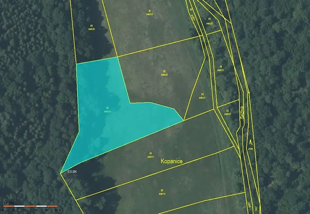 Parcela č. 648/19 s výměrou 5089 m2 (1/2 - 2.544,5 m2) je zapsána v katastru nemovitostí jako trvalý travnatý porost.
