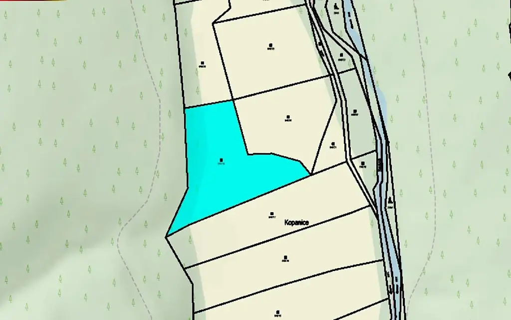 Parcela č. 472/1, s výměrou 9414 m2 (1/2 - 4.707 m2) je zapsána v katastru nemovitostí jako orná půda. K pozemku vede lesní cesta. V blízkosti jsou Rybníky Zbyslavice.