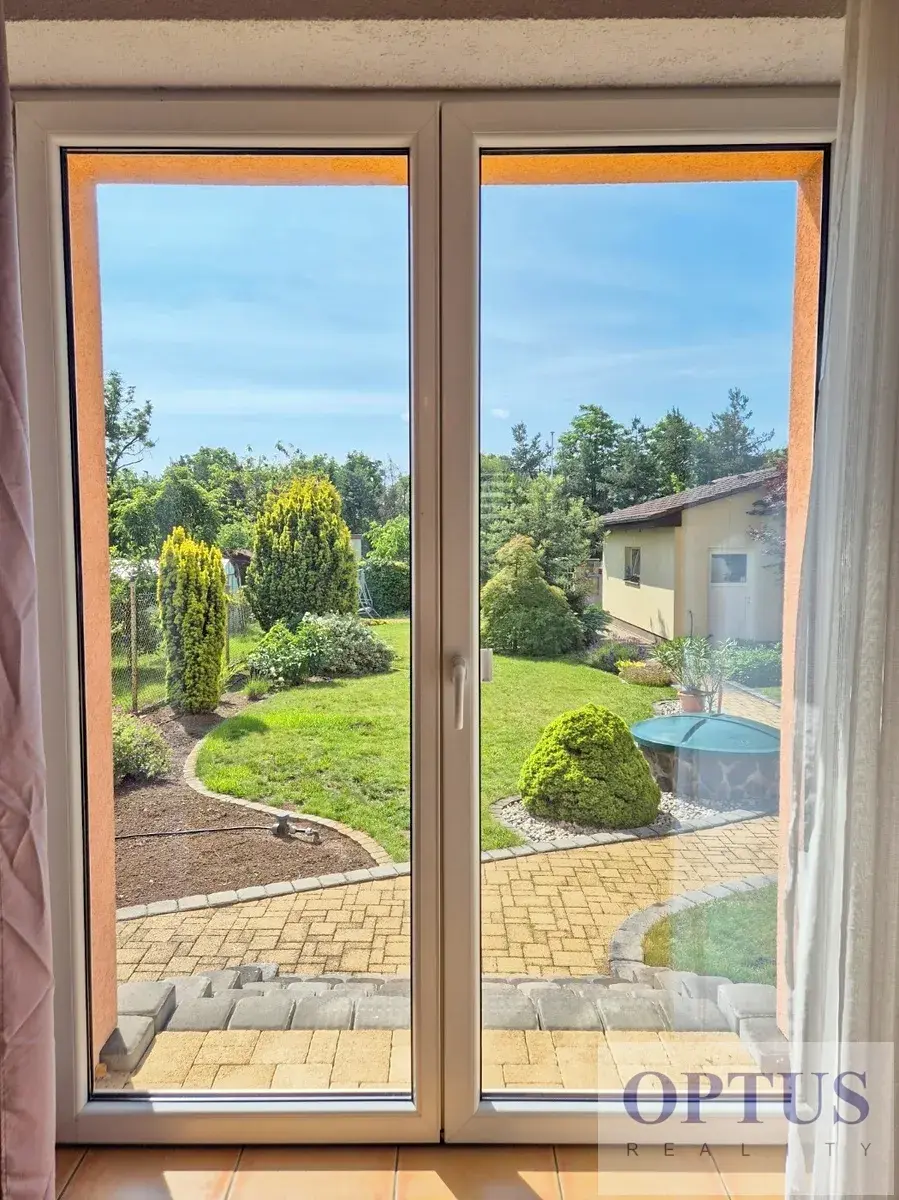 Nabízíme světlý zařízený byt 1 + kuchyňský kout (o velikosti cca 33 m2) s výhledem a se vstupem do udržované zahrady, situovaný v přízemí rodinného domu z r. 2009. Byt tvoří pokoj o velikosti cca 30 m2 s kuchyňským koutem, s krbovými kamny (pouze dekorace) a s francouzským oknem, kterým se vchází na zahradu, dále je v bytě koupelna se sprchovým koutem a s toaletou.