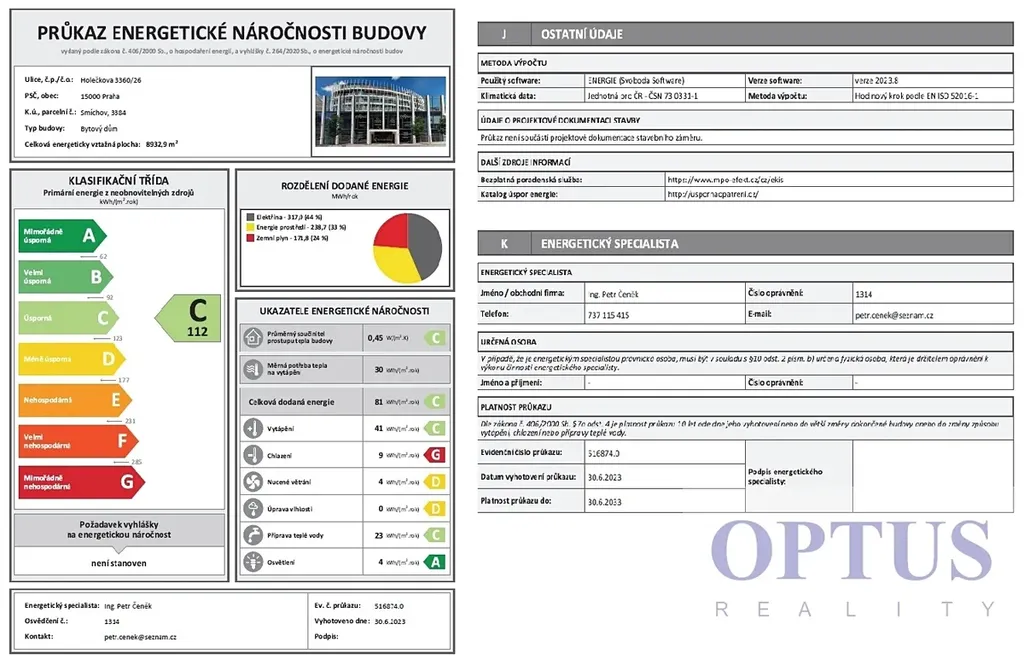 | Ukazatel energetické náročnosti | 112 kWh/m2 za rok |