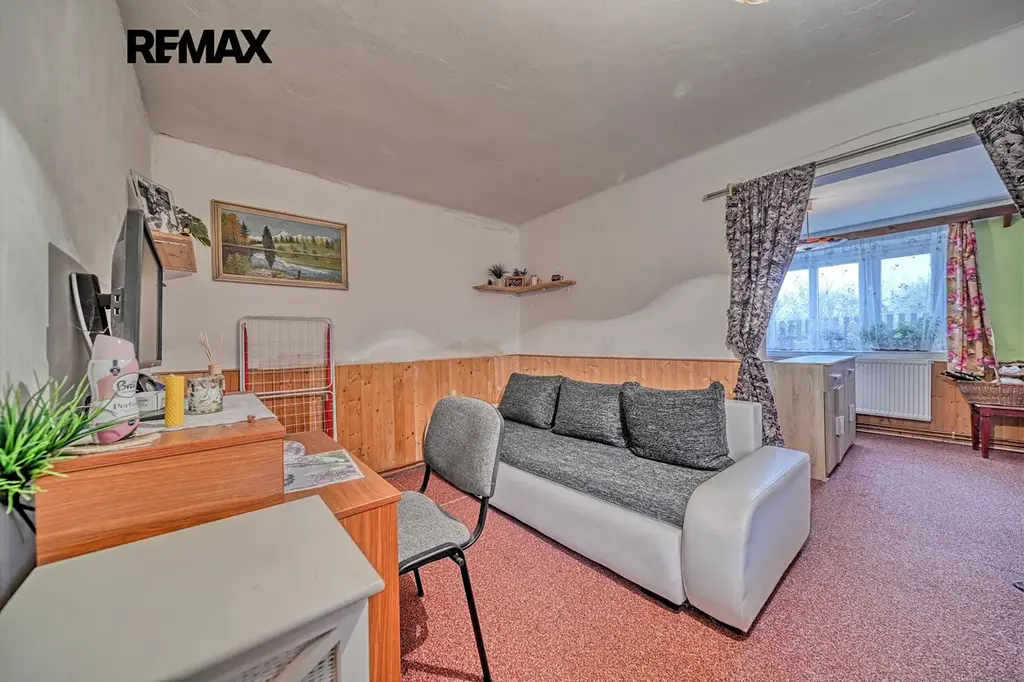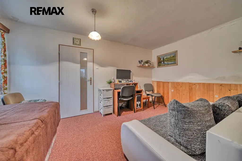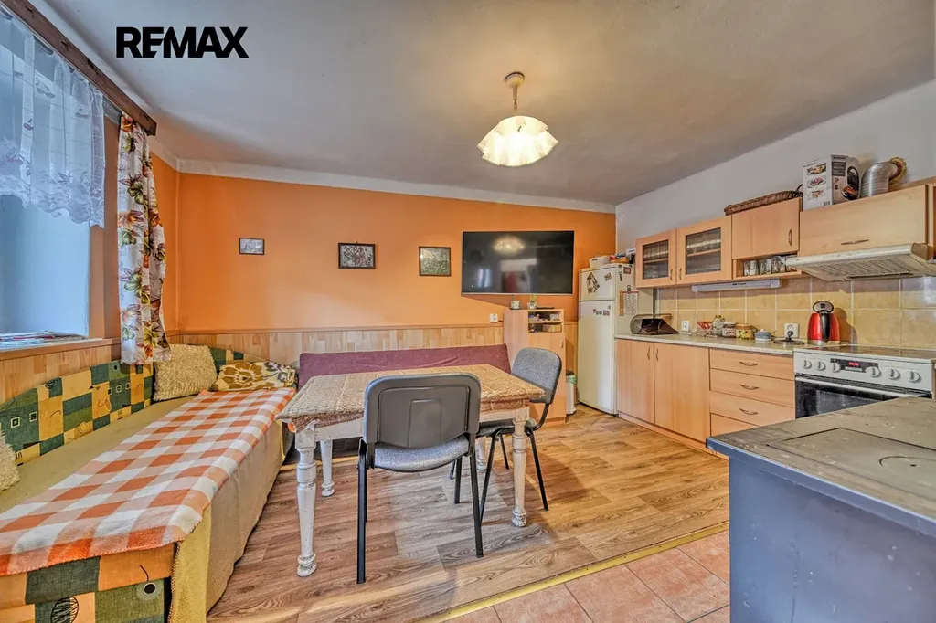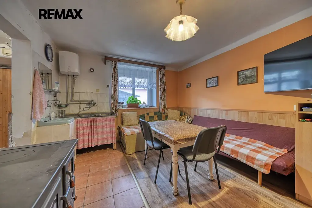 Dovolujeme si Vám nabídnout ke koupi menší rodinný dům č.p. 406 o užitné ploše cca 44 m², situovaný v klidné části Nový u Městce Králové. Dům se nachází na pozemku o celkové výměře 874 m². Pozemek je rovinatý, oplocený a nabízí dostatek soukromí i prostoru pro odpočinek či další využití. Dispozice domu je 3+kk: obývací pokoj s kuchyňským koutem (cca 15 m²) a dva průchozí pokoje (každý cca 13 m²). Součástí domu je koupelna se sprchovým koutem a WC (cca 3,5 m²). Dům je jednopodlažní, nepodsklepený, s půdním prostorem. Ze zahrady je samostatný vstup do technické místnosti (cca 18 m²), která nabízí další praktické využití. Nemovitost je vybavena plastovými okny, střechou s taškovou krytinou a různorodými podlahami (dlažba, linoleum, koberce). Vytápění je řešeno krbovými kamny s rozvodem do radiátorů, ohřev vody v koupelně zajišťuje bojler, v kuchyni průtokový ohřívač. K dispozici je elektřina 230/400 V, obecní vodovod a odpad je sveden do septiku (kanalizace v obci není k dispozici). Na dům navazují hospodářské stavby (zděné i dřevěné), které lze využít jako dílnu, sklad či chov. Na dvoře najdete také kolnu a zděnou pergolu s udírnou – ideální pro posezení s rodinou a přáteli. Zahrada nabízí skleník, kolnu na dřevo a několik vzrostlých stromů. Dům je vhodný ke kompletní rekonstrukci - podlahy jsou betonové, základy kamenné a dům nemá provedenou izolaci proti zemní vlhkosti. Na listu vlastnictví je evidováno věcné břemeno, které bude vymazáno na základě úmrtního listu. Lokalita Nový nabízí klidné bydlení, zatímco veškerou občanskou vybavenost a výbornou dopravní dostupnost naleznete v nedalekém Městci Králové. Prohlídky nemovitosti budou možné o víkendu 18. a 19. 4. 2026 v dopoledních hodinách. Pro více informací nebo sjednání prohlídky mě neváhejte kontaktovat. Prodávající si vyhrazuje právo vybrat kupujícího na základě jím zvolených kritérií.