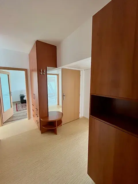 Od 1.6.2026 nabízíme k pronájmu hezký a dispozičně praktický byt na okraji ul. Dr. Bureše, s bezproblémovým parkováním. Skládá se ze dvou pokojů, obýváku s lodžií a jídelnou s balkonem, která se dá využít např. jako pracovna. Byt má neprůchozí všechny pokoje a je zařízen plně vybavenou kuch. linkou a šatními skříněmi v pokoji a předsíni. Na patře k dispozici sušárna a sklepní kóje.
