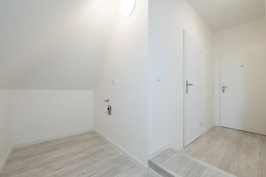 Útulná mezonetová garsoniéra má výměru 44,4 m² a náleží k ní prostor v podkroví na spaní, příp. na uložení věcí a sklepní kóje o výměře 3 m².
