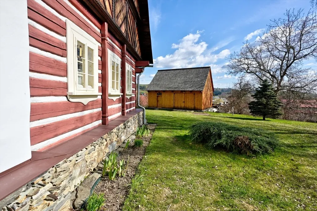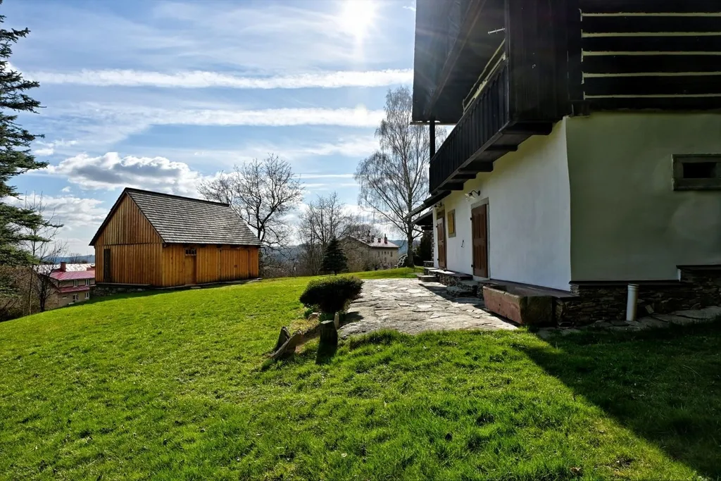 Sen každého chalupáře. Chalupa, která byla součástí rozsáhlého hospodářství, jedno z původních stavení nacházející se v klidné, okrajové části obce Poniklá, zmiňovaná v místních publikacích jako Krejčův statek. Taková je chalupa, která prošla za poslední roky rekonstrukcí. Poskytuje klid a odpočinek v prostorách, kde je zachováno množství původních prvků s citlivým doplněním moderního vybavení s důrazem na přírodní materiály. Celé přízemí chalupy je řešeno nadstandardně. Původní hospodářský a obytný prostor je rozdělený vstupní klenutou chodbou s kamennou podlahou vyhřívanou teplovodním podlahovým topením. Z ní se vstupuje do prostorné světnice s kachlovými kamny a navazujícího malého pokoje. Z hospodářské části vznikla ložnice a zázemí kuchyně s jídelnou. Z chodby se dále vchází do koupelny s toaletou, černé kuchyně, kde je umístěna technologie vytápění, do kamenného sklepa a po schodišti do podkroví. V prostoru podkroví, jehož převážná část je ponechána na dokončení dle představ nového majitele, jsou dva pokoje. Na upraveném pozemku, přes který protéká malý potůček, je umístěna stodola, sloužící pro skladování zahradní techniky a uložení materiálů. Při prohlídce Vás rádi provedeme domem a sdělíme více podrobností.