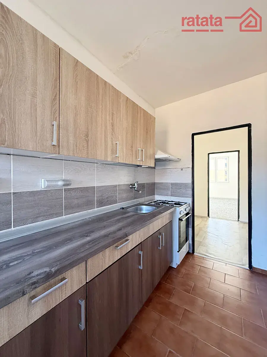 Byt je čistý a slunný. Je zde kuchyňská linka, na podlahách je položeno lino a koberec. Byt je volný k nastěhování IHNED.