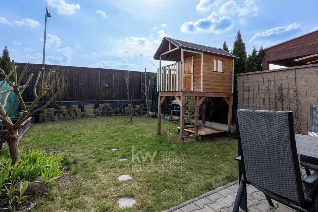 - Z obývacího pokoje je přímý vstup do zahrady. Jíst tak můžete na čerstvém vzduchu. Zahrada disponuje terasou s posezením a nabízí příjemné místo pro relaxaci, grilování, pěstování okrasných rostlin i zeleniny, ale i pro hru dětí.