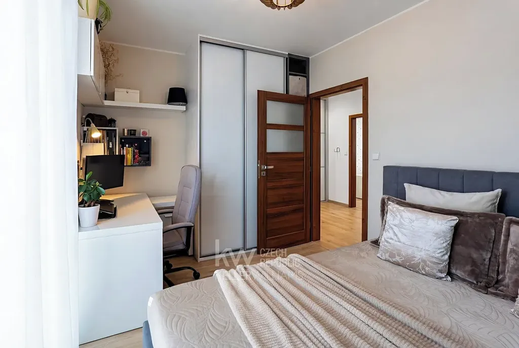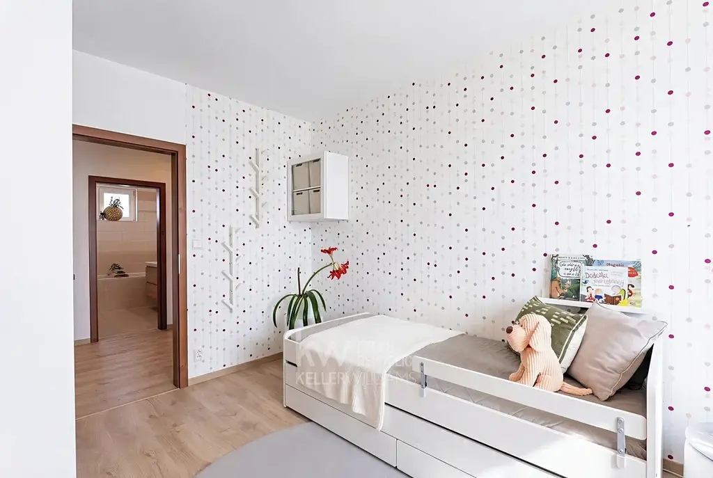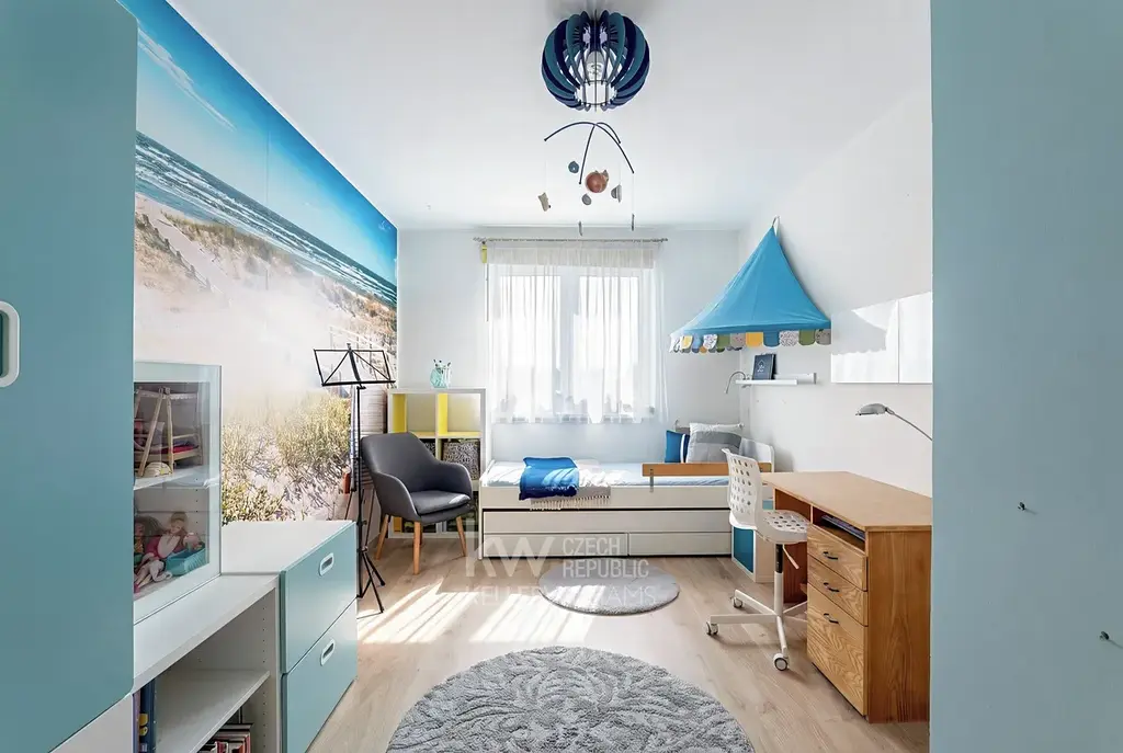 - Další dvě ložnice jsou orientovány na jih, poskytují tak dostatek denního světla po celý den. Mohou sloužit jako dětské pokoje, každá až pro dvě děti, nebo se z jedné může stát pracovna či pokoj pro hosty.
