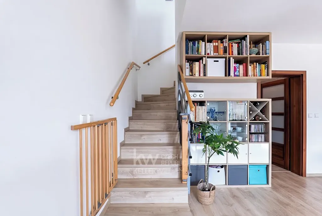 - Centrální chodba v druhém podlaží má vestavěnou skříň a přidává tak další úložný prostor.