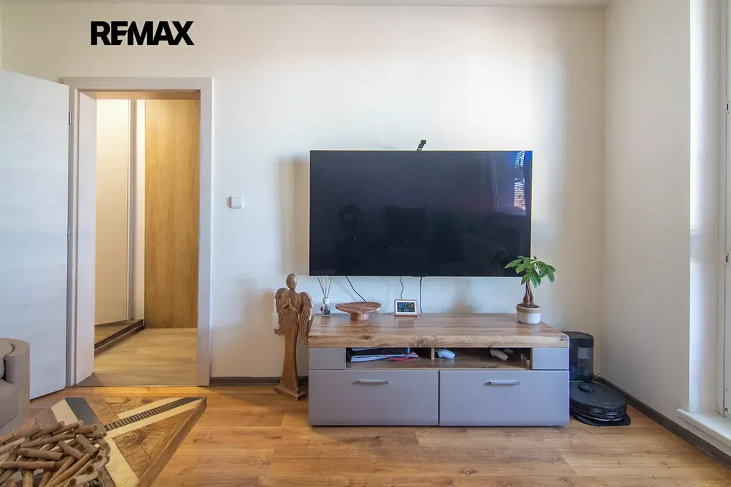 Byt prošel v nedávné době rekonstrukcí. Má nové rozvody elektřiny, zděnou koupelnu s vanou, plovoucí podlahy a hlavně na míru zhotovenou kuchyňskou linku s vestavěnými spotřebiči - myčka, indukce, lednice s mrazákem, mikrovlnka, trouba, digestoř, která je chloubou celého bytu. Byt nabízí také dostatek úložného prostoru - vestavěné skříně v pokojích, na chodbě. Byt se nabízí pouze částečně zařízený - jídelní stůl s židlemi, komoda v ložnici, knihovnička a police v dětském pokoji.