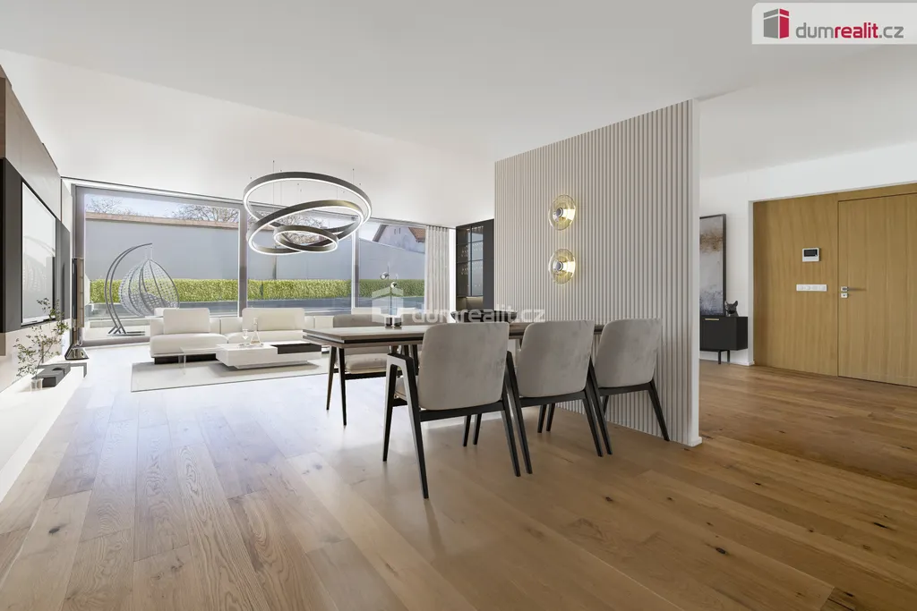Hledáte nadstandartní dům v blízkosti budoucí stanice metra? Tak právě pro vás zde mám multifunkční, vícegenerační rodinný dům (B4) s dispozicí 6+kk v Praze 12 – Libuš, který je vzdálen pouze 2 minuty pěšky od budoucí stanice metra D - Libuš a je v uzavřeném rezidenčním areálu s dalšími 15 domy. Celková podlahová plocha domu je 378 m², jsou zde dvě terasy (145 m²), plocha pozemku je 261 m² z toho zahrada má celkem 188 m². Dispozice tohoto moderního, nízkoenergetického domu tvoří v přízemí: prostorný obývací pokoj + kk (70,6 m²) se vstupem na terasu (28,5 m²), pracovna (22,7 m²) s vlastní koupelnou s WC (3,5 m²), dále společná koupelna (4,5 m²) a zádveří (5 m²). Po schodišti (12 m²) obloženém dřevem se dostaneme do 1. patra (2NP), kde je hlavní ložnice (18,5 m²) s šatnou (10,1 m²) a vlastní koupelnou s WC (10,7 m²), dále pak šatna (4,8 m²), hala (10,3 m²) a dva dětské pokoje. První pokoj (18,4 m²) má vlastní koupelnu (5,1 m²) s WC, druhý pokoj (19,6 m²) má také koupelnu (5,1 m²). Přes samostatnou chodbu (11,7 m²) se dostaneme ke schodišti (7,6 m²) do 2. patra, kde se nachází panoramatická terasa 116,4 m², která je z části krytá (prostor sprchu nebo vířivku) a je orientována na východ, sever a západ. Z obývacího pokoje se po schodišti dostaneme do suterénu domu, kde je multifunkční místnost, kterou můžete zcela upravit podle svých potřeb. Tato místnost má nadstandartních 96,3 m² a můžete zde mít opravdu cokoliv – např. samostatnou bytovou jednotku 1+kk s koupelnou a WC, kinomístnost, karaoke, panský klub, fitness, vnitřní bazén a nebo svoji soukromou pracovnu (např. pro advokáty, architekty, projektanty, daňové poradce apod.). Tato místnost je nedokončená a je připravena na úpravy dle vašich představ. Místnost má také přístup přímo z garáží – velmi výhodné. V suterénu domu je dále chodba (4,9 m²) se zádveřím a sklep / tech. místnost (18,8 m²) a komora (5 m²), kde je umístěný plynový kondenzační kotel. Ze suterénu je také vstup na zahradu (144 m²), která je kaskádovitá. Další zahrada je před vstupem do domu (44 m²) ve vnitrobloku. V celém domě je podlahové topení, okna jsou dřevěná, v obývacím pokoji a na terase je HS portál, u všech oken je příprava ne před okenní žaluzie, v domě je zavedeno optické vlákno na internet, podlahy jsou dřevěné vč, obložení schodiště. Vstupní dveře do domu jsou bezpečnostní, interiérové pak také dřevěné s obložkami. Osobně mohu doporučit, můj velmi blízký přítel zde bydlí, rád vám jako zájemci o koupi může předat další informace. Celý projekt je umístěn na konci slepé ulice se vstupem do budoucího parku. Stanice metra D - Libuš bude v docházkové vzdálenosti - realizace 2032. Velmi vám doporučuji prohlídku tohoto domu 6+kk (378 m²), který vás svou velikostí ohromí, dispozicí nadchne, a nakonec chytí za srdce. Kompletní prezentace je na našich webových stránkách. Ev. číslo: 655338.