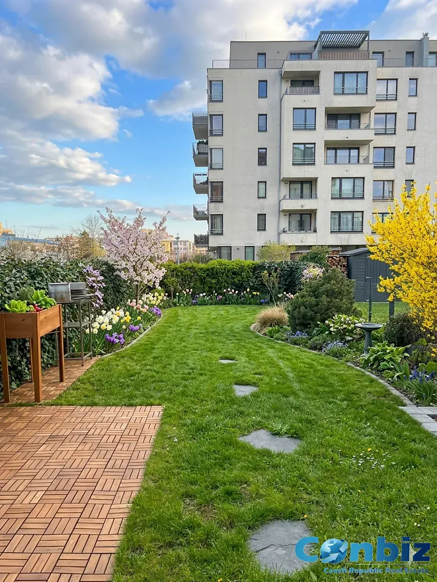 Byt je zařízený (není zde jen sedací souprava). Nachází se ve vyvýšeném přízemí odpovídající druhému patru domu, má balkon a také velkou zahrádku, která je také ve vyvýšeném přízemí domu, odpovídající druhému patru. Na oknech jsou funkční elektrické žaluzie. Fotky odpovídají realitě. Doporučujeme prohlídku.