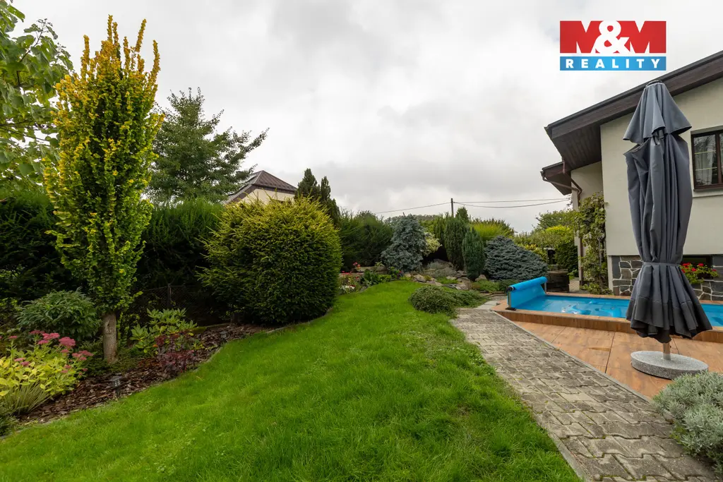 Nabízíme k prodeji luxusní rodinný dům v klidné části Třebovic na ul. Krameriova. Tento dům o celkové užitné ploše 298 m² zahrnuje dvě samostatné bytové jednotky a je ideální pro rodinné bydlení nebo investici. První jednotka v podkroví nabízí dispozici 3+KK s koupelnou, WC, šatnou a balkonem. Druhá jednotka, umístěná od mezipatra, zahrnuje tři pokoje, koupelnu, WC, velkou šatnu a balkon. Přízemí dominuje prostorný obývací pokoj s kuchyní a jídelnou, který je propojen s terasou a venkovním bazénem. Suterén obsahuje garáž a technickou místnost. Zahrada o ploše 884 m² nabízí přístřešek pro auta, okrasnou část a zahradní domek. Dům je vytápěn plynovým topením s radiátory KPT-D Hydronic.