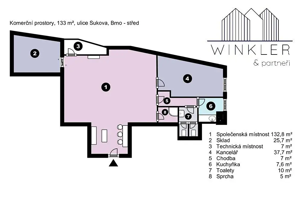 Pronájem komerční nemovitosti, Brno, Sukova, 233 m2 (ID: 2016591)