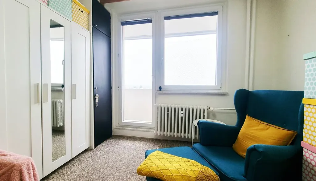 Byt (26 m²) se nachází v 8. patře revitalizovaného panelového domu se dvěma výtahy.