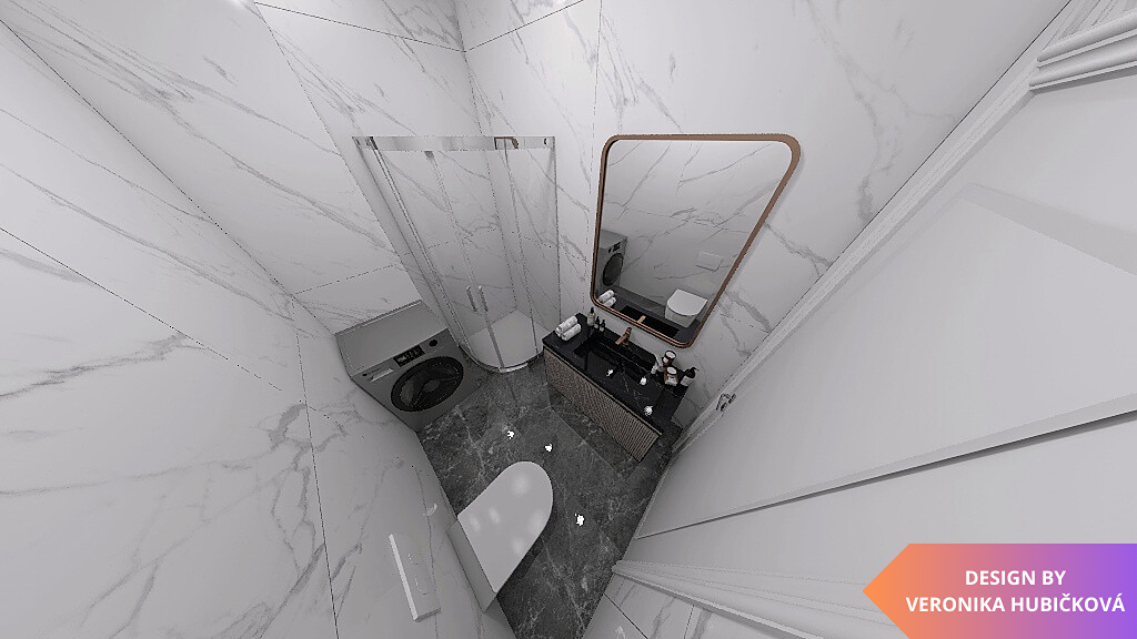 Koupelna – umyvadlová skříňka, zrcadlová skříňka, sprchový kout, WC