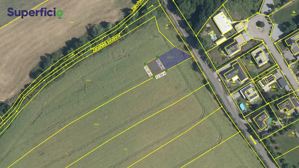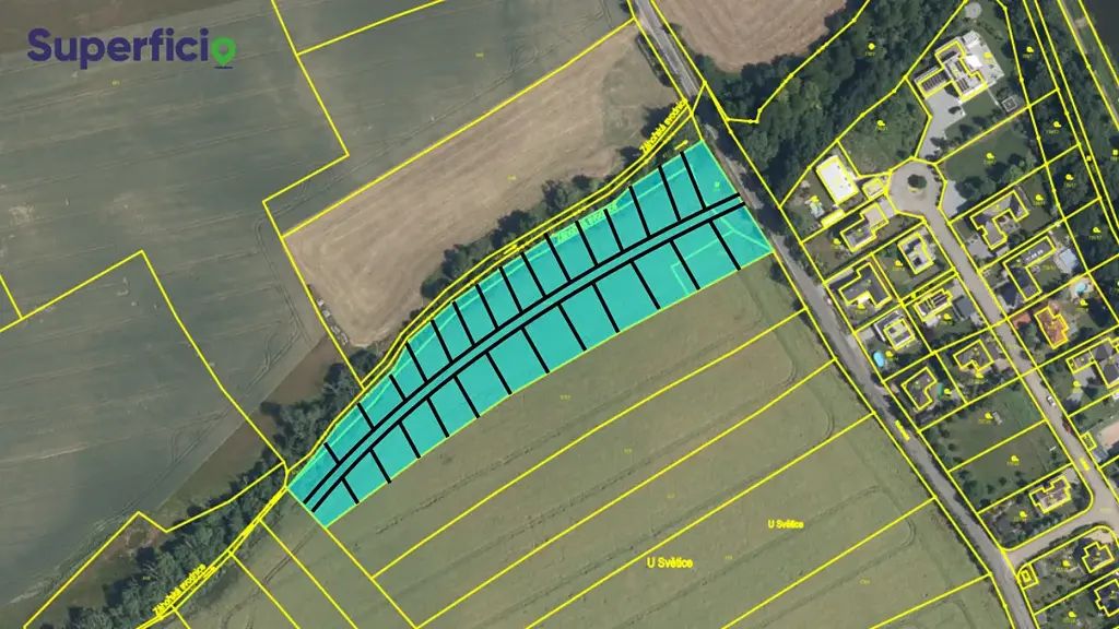 V současné době vlastníme soubor pozemků o celkové výměře cca 11 000 m², který bude v průběhu tohoto roku rozdělen geometrickým plánem na přibližně 55 samostatných parcel o výměře okolo 200 m².