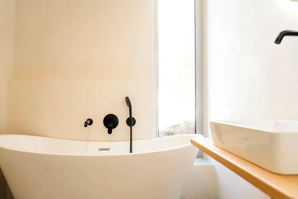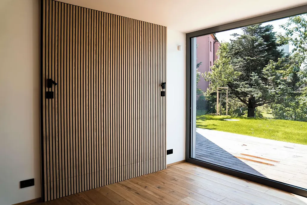 Hlavní ložnice má vlastní en-suite koupelnu a šatnu, další dvě ložnice jsou vybaveny vestavnými skříněmi. Dispozici doplňuje centrální koupelna s vanou, samostatná toaleta, prostorná šatna a technická místnost. Obytný prostor o výměře 50 m² je srdcem bytu a díky velkoformátovému prosklení plynule propojuje interiér s exteriérem.
