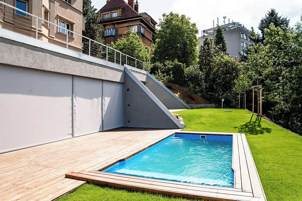 Představte si místo, kde se propojuje soukromí vily se zahradou a bazénem s komfortem moderního městského života. Tento exkluzivní byt v nové rezidenci Bellecour o dispozici 4+kk a rozloze 121 m² nabízí výjimečný obytný prostor s přímým vstupem na tři samostatné terasy a do rozsáhlé privátní zahrady o velikosti 406 m².