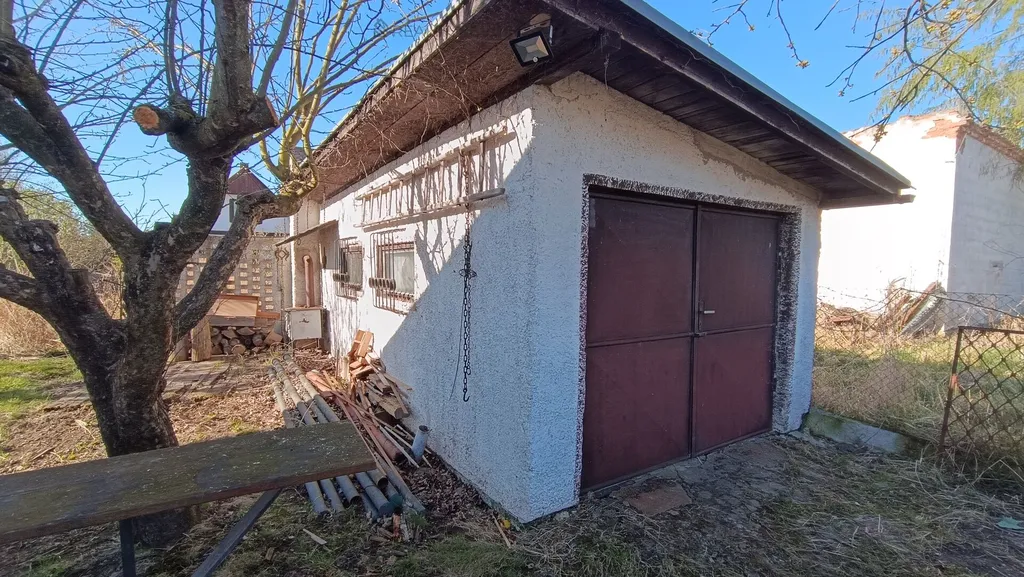 Chata stojí na oploceném pozemku o celkové výměře 344 m², který nabízí dostatek prostoru pro odpočinek i zahradničení. Na pozemku se nachází vzrostlé ovocné stromy – jabloň, švestka a višeň. Součástí prodeje je také samostatná garáž o zastavěné ploše 20 m², která je aktuálně využívána jako sklad zahradního náčiní a dílna.