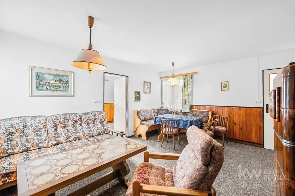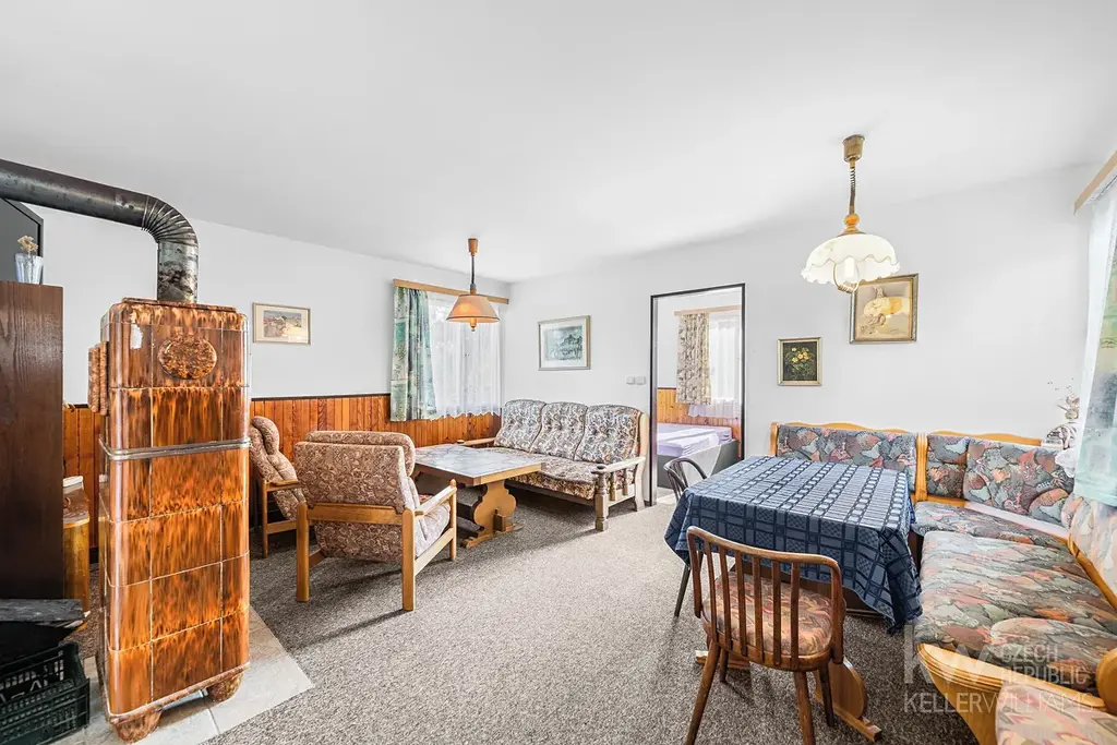 Tato útulná chata o dispozici 3+1 a velkorysých 86 m² užitné plochy je připravena stát se vaším novým domovem daleko od shonu. Její srdce bije v rytmu tradice, o čemž svědčí i původní zařízení a nábytek, které vytvářejí autentickou atmosféru a čekají na vaše nové příběhy. Konstrukce chaty kombinuje pevnou zděnou podezdívku s lehkostí dřevěných desek, což jí dodává jedinečný charakter a pocit splynutí s okolní přírodou.