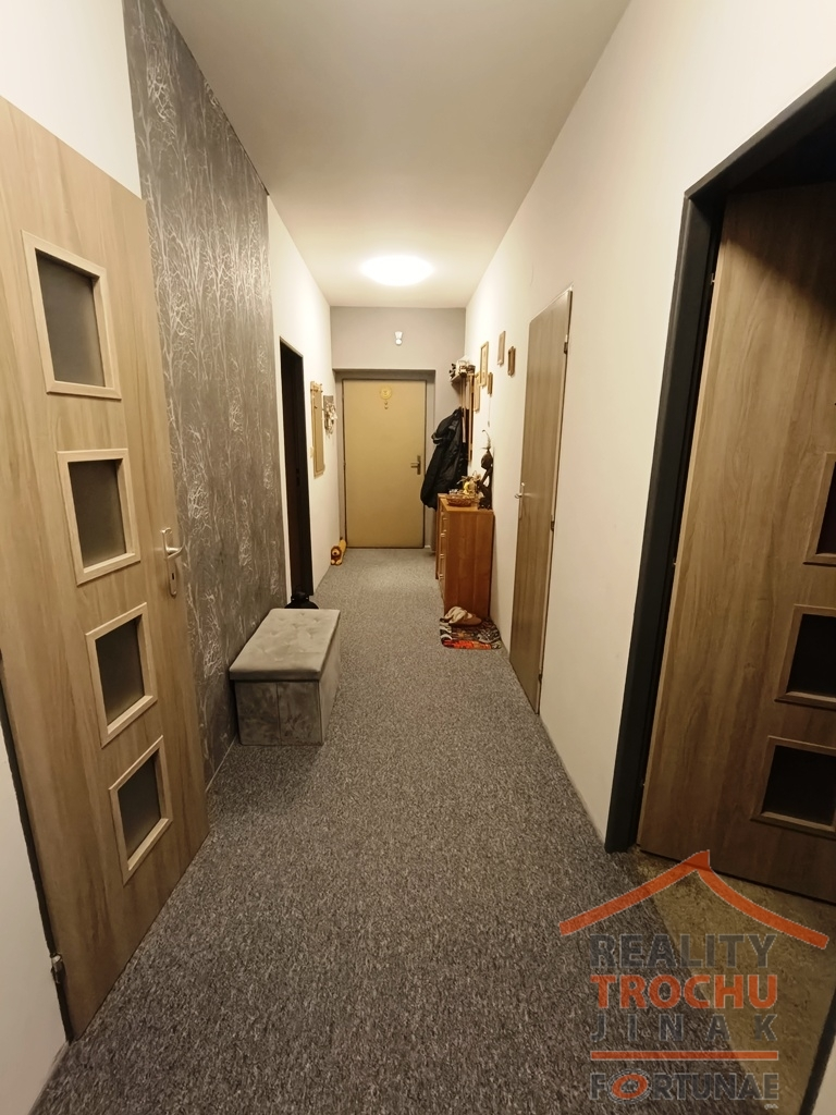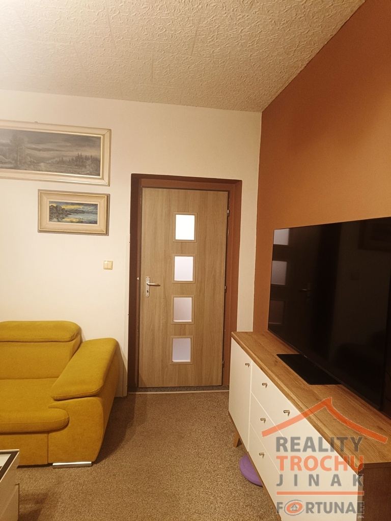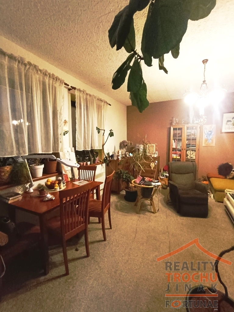 3 obytné místnosti, kuchyň, předsíň a příslušenství: koupelna, WC, komora a sklepní koje.