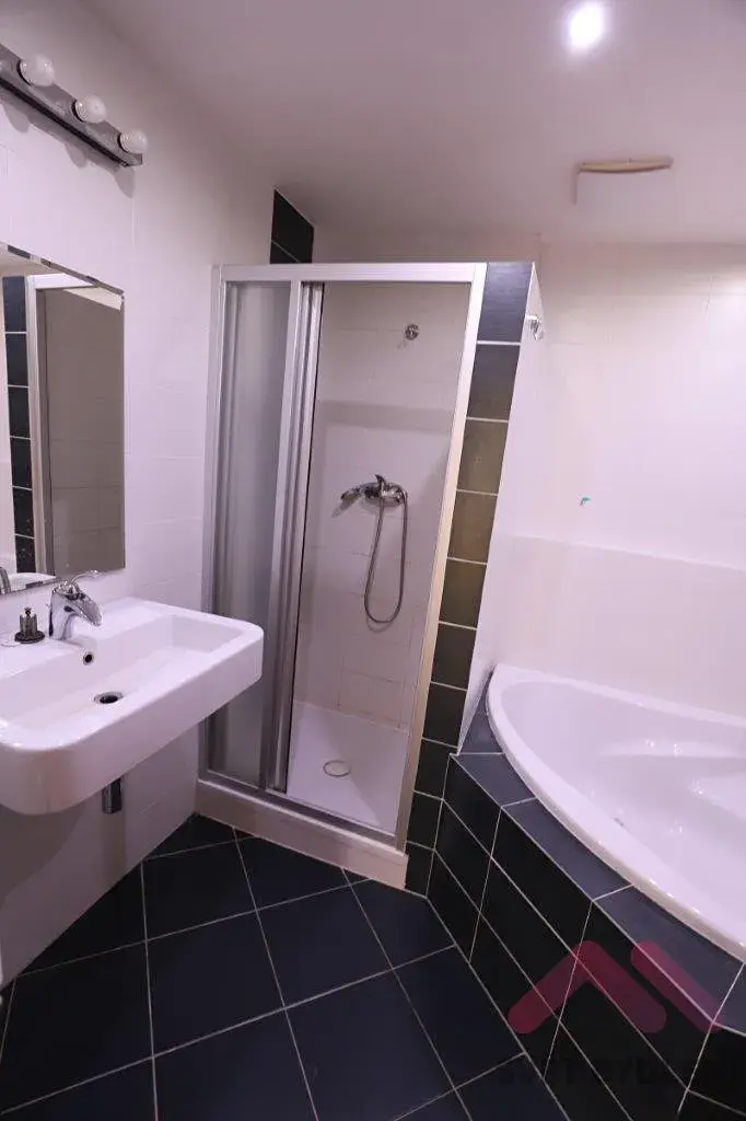 Byt se nachází v 2.NP novostavby s orientací do volného prostoru a na zeleň. K dispozici jsou po vstupu do bytu dvě samostatné ložnice, samostatná šatna a toaleta. Z chodby je taktéž přístupná prostorná koupelna kde naleznete jak rohovou vanu tak i sprchový kout spolu s pračkou. Prostorný obývák je spojen s kuchyňským koutem, zařízeným novými spotřebiči, jako : horkovzdušná trouba, mikrovlnka, sklokeramická deska, americká - dvoukřídlá lednice s výrobnou ledu a myčka. Neopomenutelnou výhodou tohoto bytu je i samostatná garáž v suterénu domu se zamykatelnými vraty. Cena bytu včetně garáže je 29.500,-Kč + služby 5.000Kč + elektřina se převádí na nájemníka. Volné ihned!