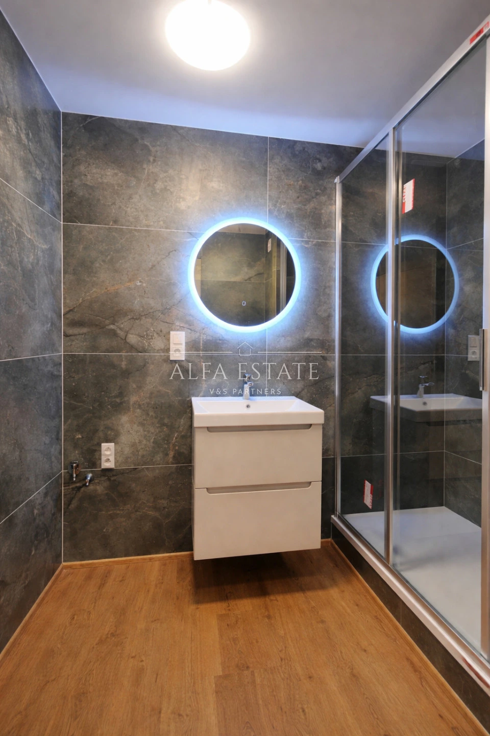 V rámci kompletní renovace byly provedeny zcela nové elektro rozvody, rozvody vody, nové štuky, snížené SDK podhledy, nivelační stěrky s kvalitní vinylovou krytinou a instalovány nové obložkové zárubně s interiérovými dveřmi značky Sapeli. Celý interiér působí nadčasově, harmonicky a velmi vkusně.