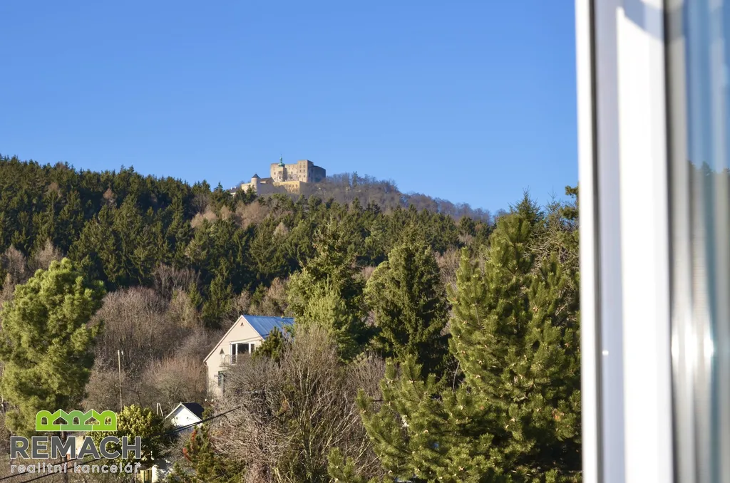 Dispozičně je řešen jako 4+1, kdy v horním patře jsou nyní dva pokoje. Jeden z nich nabízí vstup na balkon, ze kterého máte výhled do okolí. V tomto patře je možno ještě zbudovat další podkrovní pokoj.