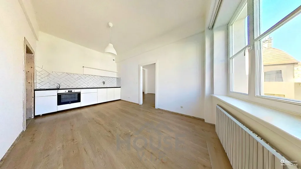 Byt se nachází v prvním podlaží (celkem 4 NP), vstup je bezbariérový. Přístup do bytu je z úrovně ulice, avšak všechna okna směřují do klidného vnitrobloku se zelení, s výhledem odpovídajícím třetímu patru.