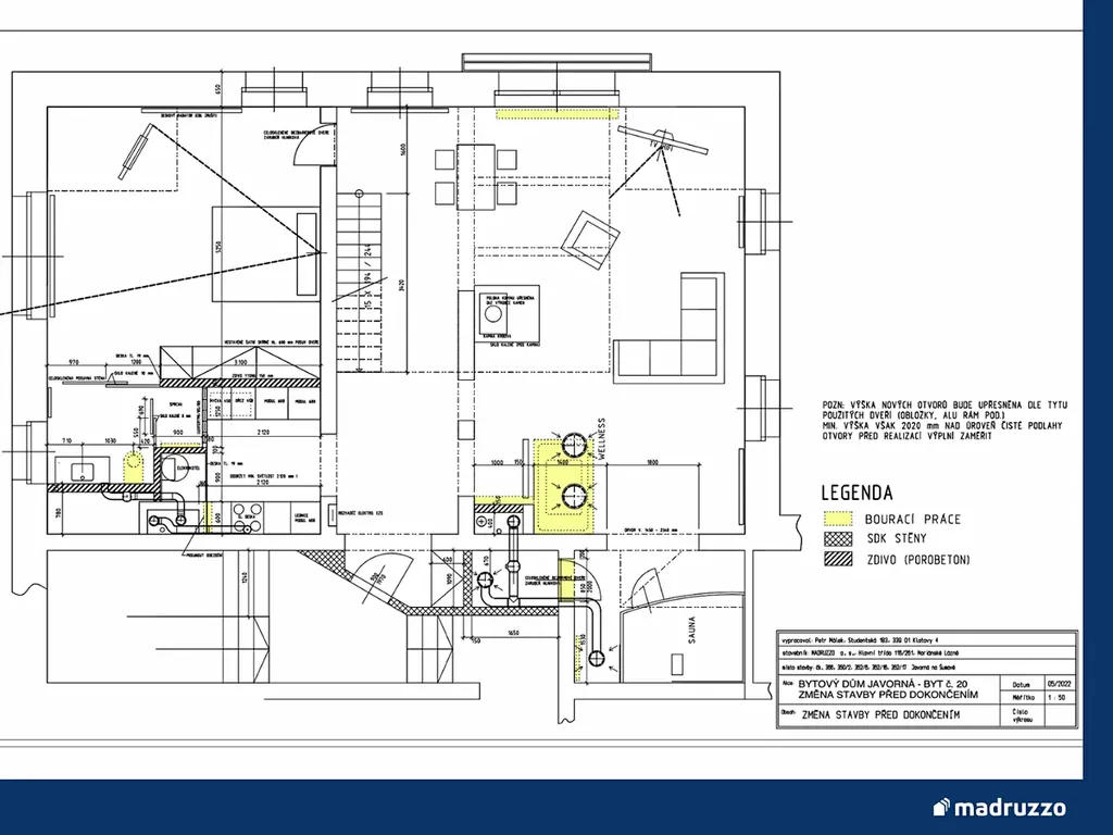 Nabízíme Vám mezonetový byt 3+kk o velikosti 114,53 m² a s balkonem o celkové výměře 4,7 m² v 3NP v novostavbě projektu Apartmánový dům Javorná na Šumavě. Jedná se o nedokončený byt, ve kterém je nutné dokončit interiérové práce, zejména podlahy, malby aj. což dává možnost kompletní úpravy interiéru dle vašich preferencí.