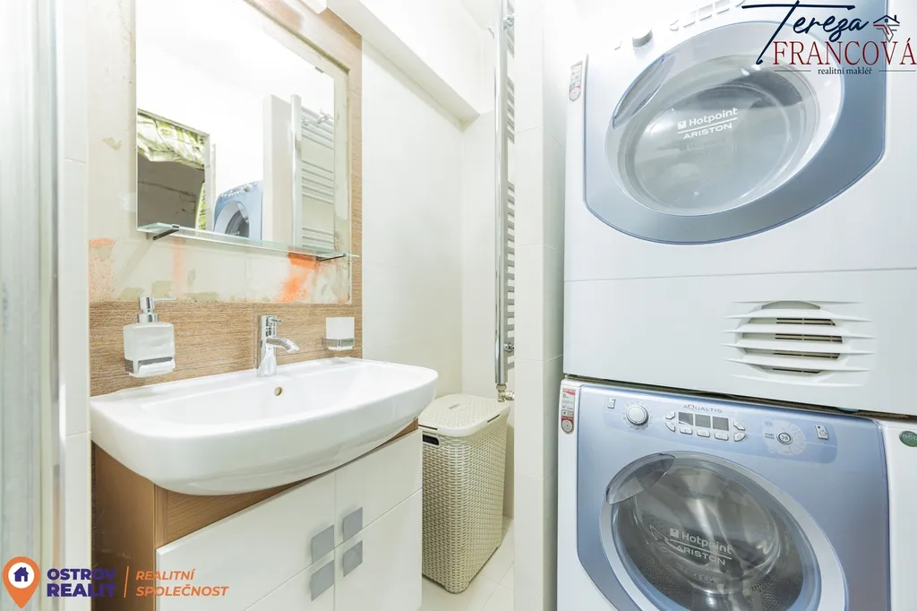 V přízemí se nachází vstupní chodba, nově vybudovaná koupelna se sprchovým koutem, podlahovým topením, žebříkem a místem pro pračku i sušičku. Dále zde najdete samostatné WC, spíž a vstup na rozlehlou zahradu. Celý dům je vytápěn radiátory, zatímco koupelna má komfortní podlahové vytápění.