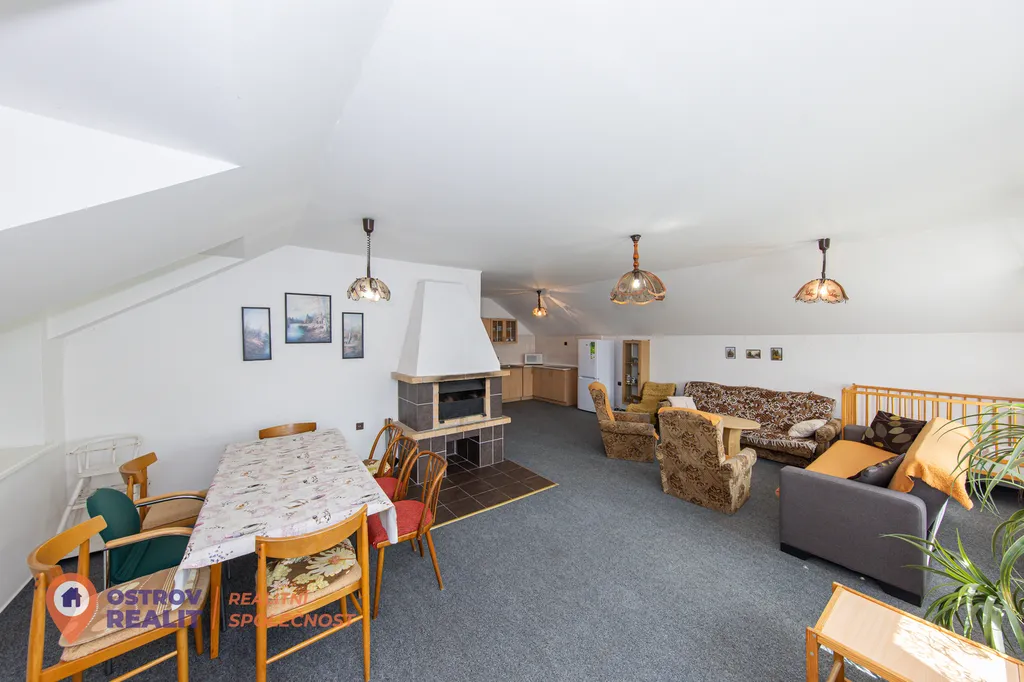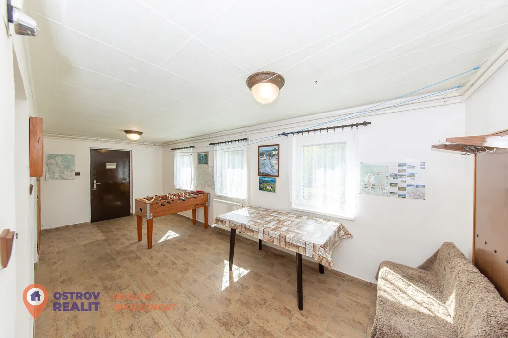 Současné uspořádání nabízí dvě kuchyně, dvě koupelny a kapacitu 13 lůžek ve čtyřech ložnicích s možností dalšího rozšíření. K pohodlí hostů přispívá útulná společenská místnost a elegantní pergola s elektřinou, grilem, udírnou, ohništěm i lávovým kamenem — perfektní pro letní večery i komorní posezení. Na pozemku je také samostatný zděný domek vhodný jako dílna či úložný prostor.