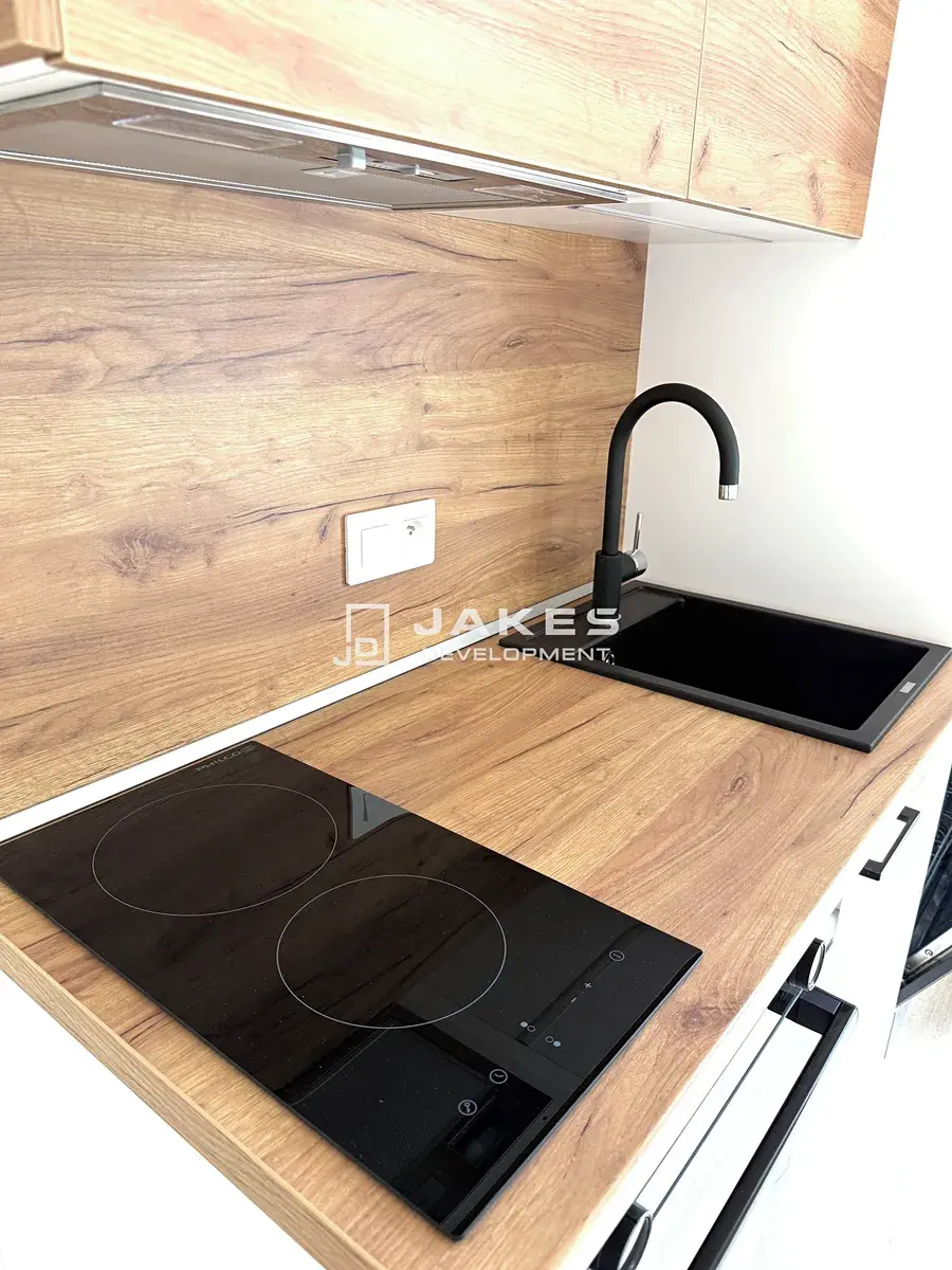 Každý byt je vybaven kvalitními vinylovými podlahami, teplovodním podlahovým vytápěním, velkoformátovými obklady a moderní kuchyňskou linkou. Byt se pronajímá nevybavený. Bytový dům prošel kompletní rekonstrukcí, je zateplený a má tepelně i hlukově izolační trojskla. Vytápění domu a bytů zajišťuje městský dodavatel energií a objekt navíc má vlastní kotelnu, což přispívá k nízké spotřebě energie a nižším nákladům na bydlení ve srovnání s běžnými domy. Přístup do domu je na klíč nebo na kód a každý byt má sklep o velikosti cca 2 m².